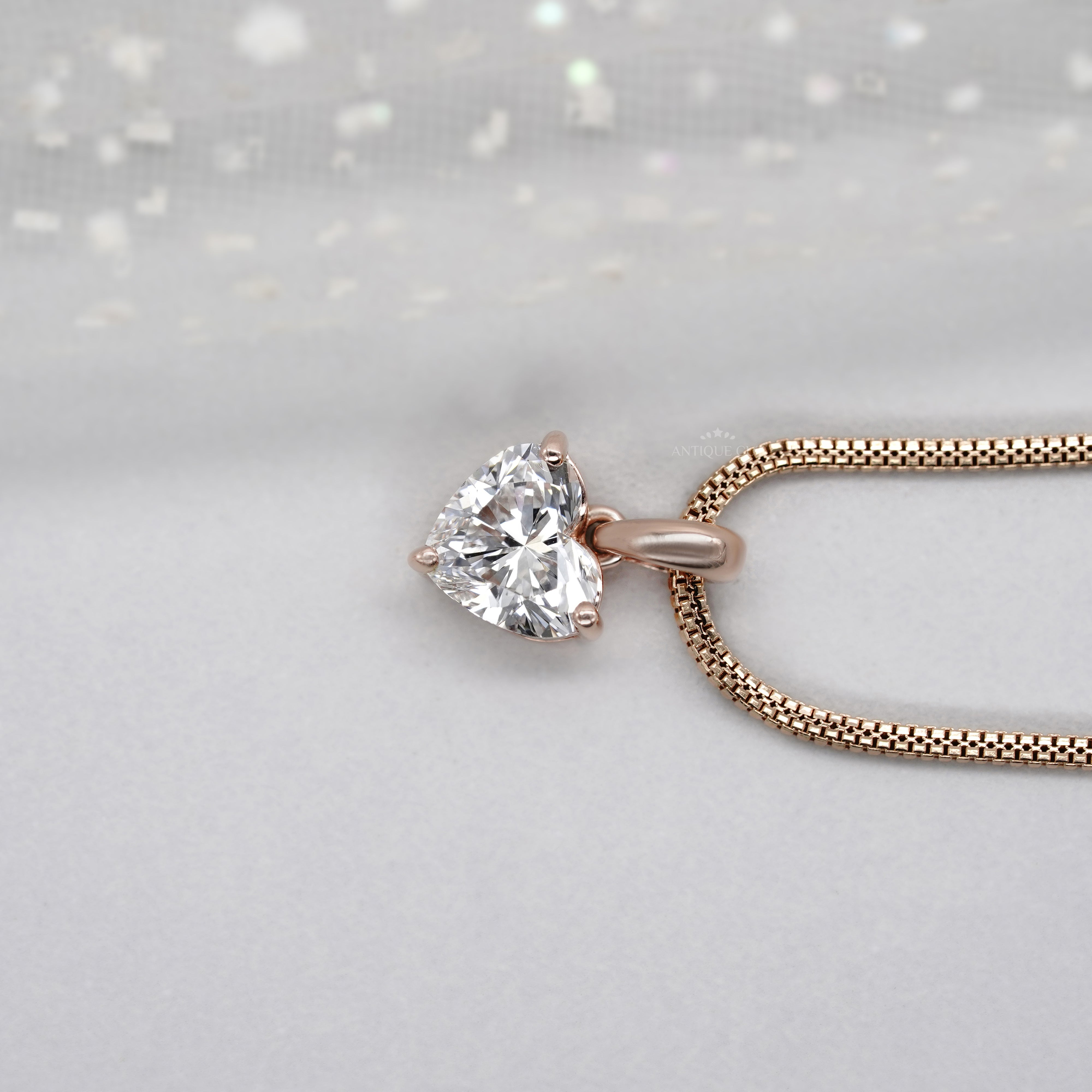1.00ct Heart Lab Grown Diamond Pendant Necklace | Rose Gold Solitaire with Chain | IGI Certified