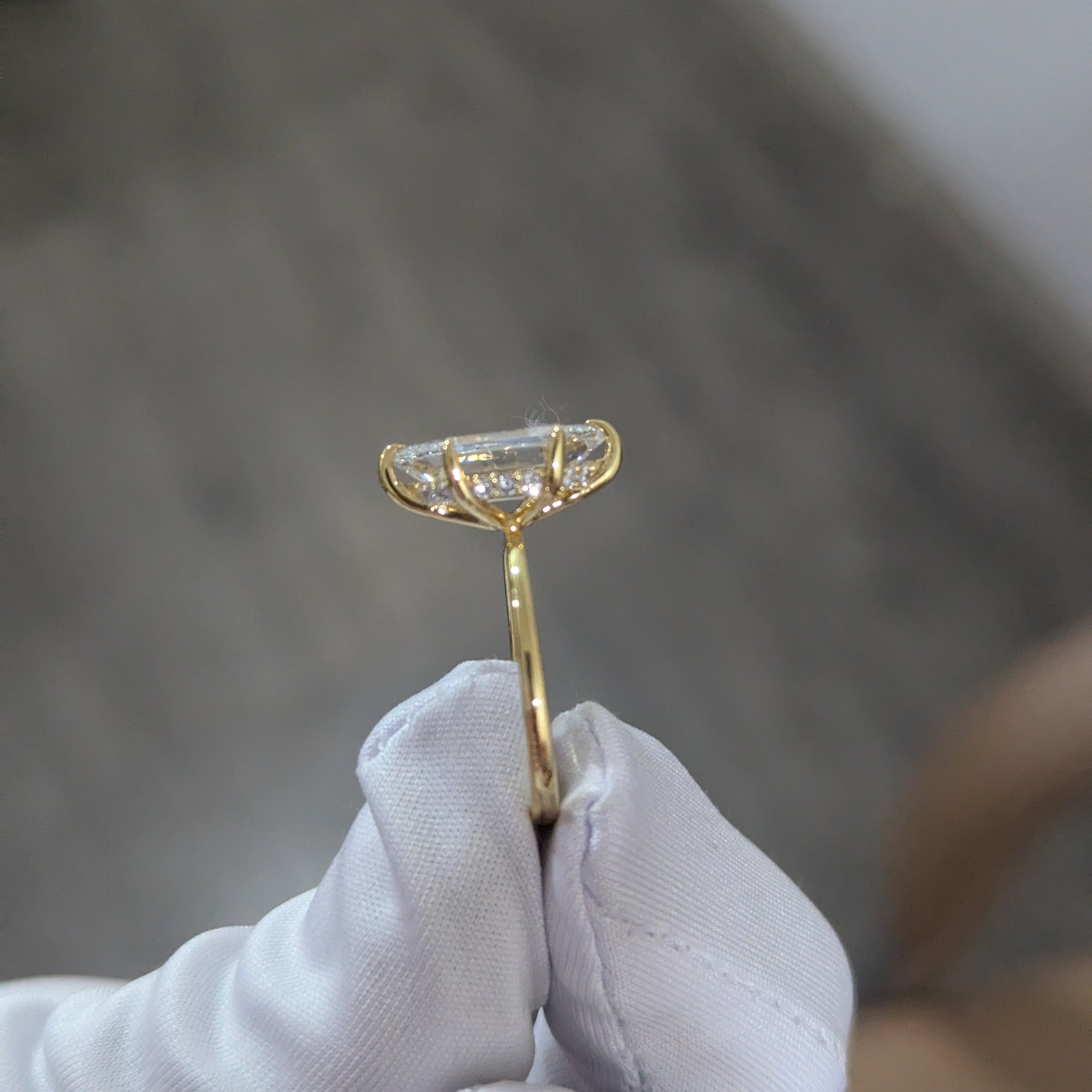 • Carat Weight: Around 0.10ct Total (Hidden Halo)