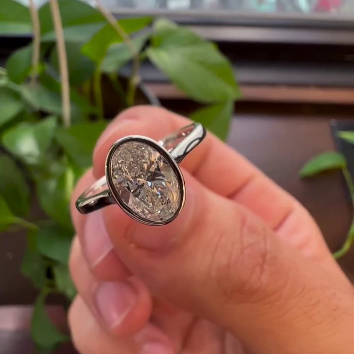 1.50ct Oval Lab Diamond Cathedral Bezel Engagement Ring | IGI Certified | D-E-F VVS–VS | Custom Gold