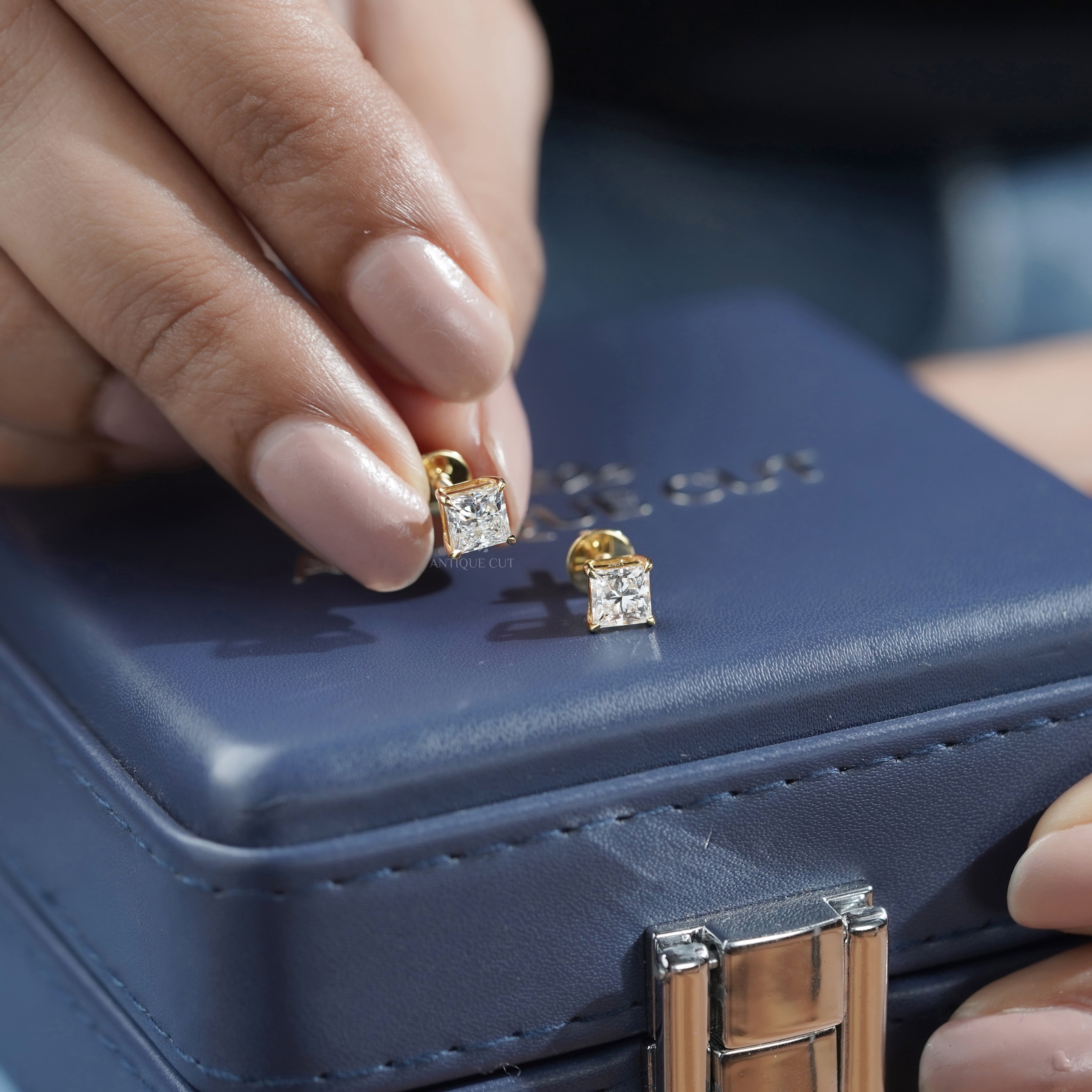 1.50tcw Princess Cut Lab Grown Diamond Stud Earrings | Yellow Gold | IGI Certified