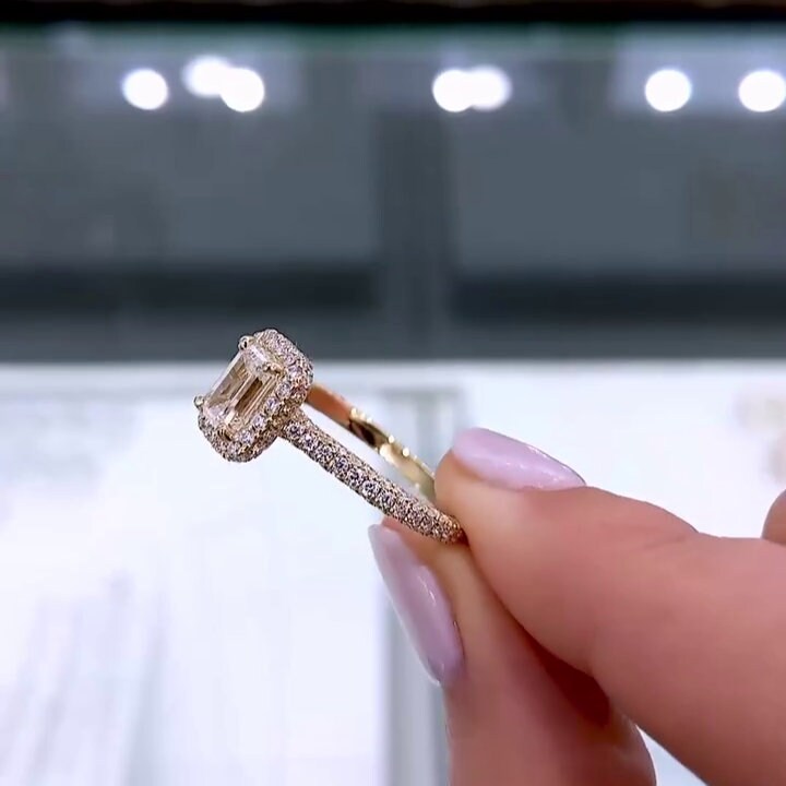 Make a statement with this 1.80tcw Emerald Cut Lab-Grown Diamond Ring, featuring a 1.00ct center stone and 0.80ct halo + pavé accents. IGI certified, DEF color, VVS–VS clarity. Crafted in gold or platinum — ethical, elegant, and fully customizable.
