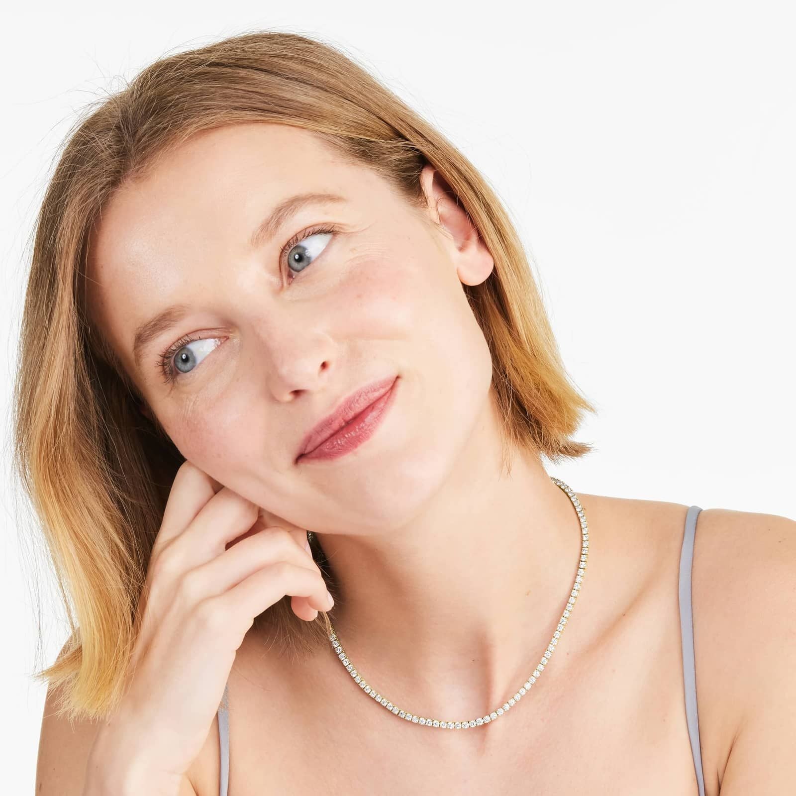 Experience luxury and sustainability with our Round Lab Grown Diamond Tennis Necklace. Crafted with stunning EF color and VS clarity diamonds, each piece comes with an IGI certificate for authenticity. Elevate your style while supporting ethical practices in the diamond industry.