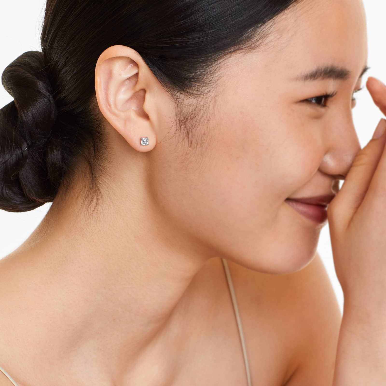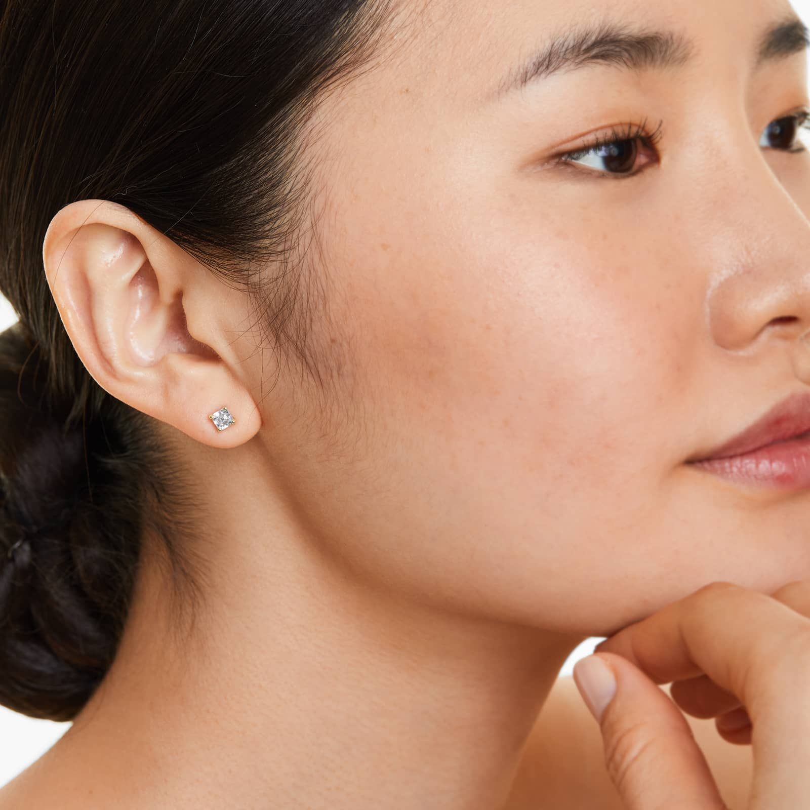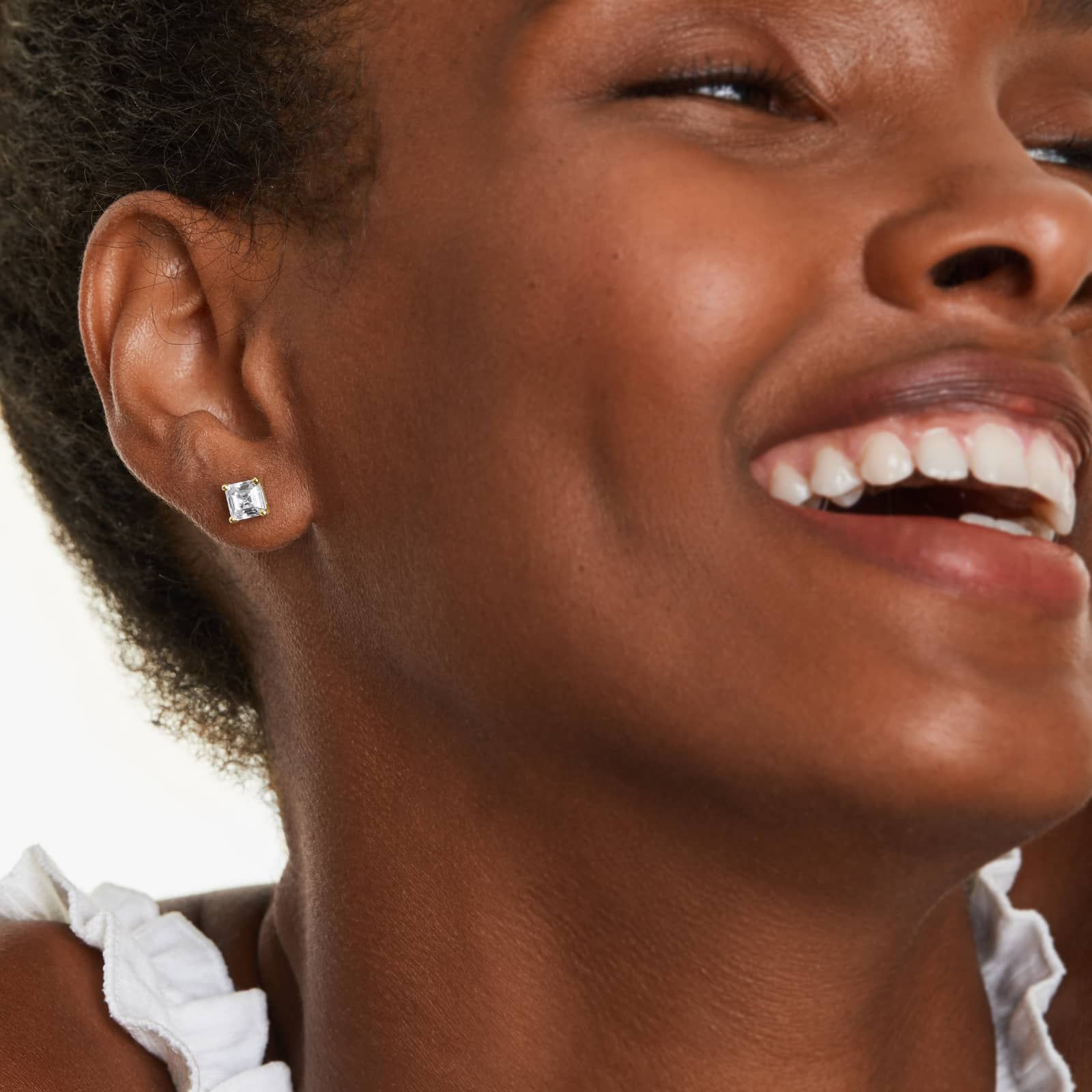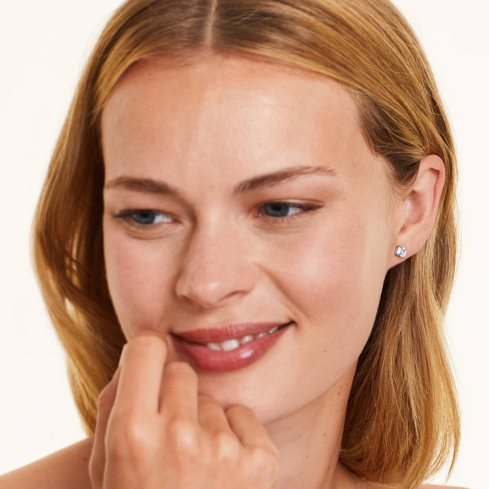 Asscher Lab Grown Diamond Push Back Stud Earrings, EF Color, VS Clarity, IGI Certified