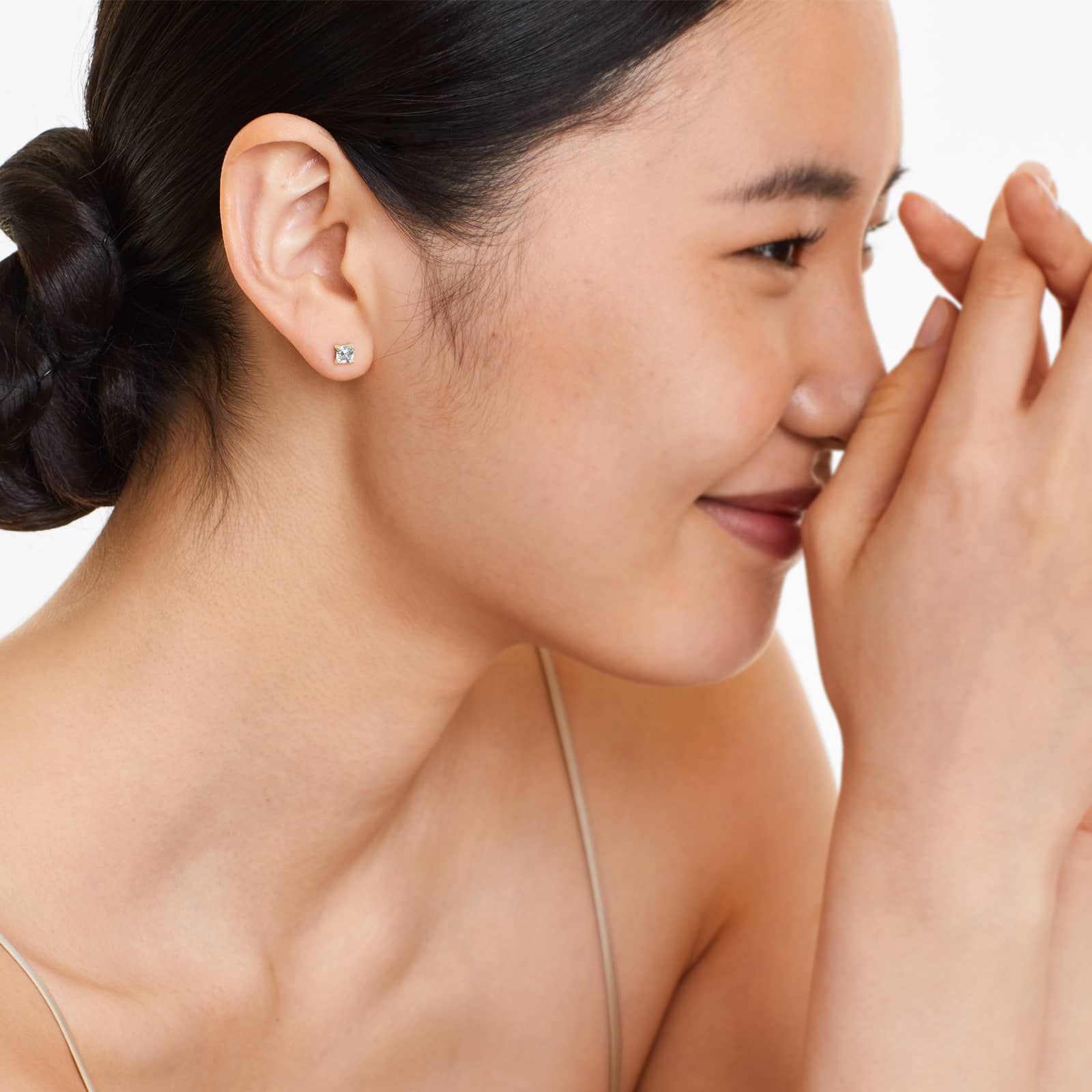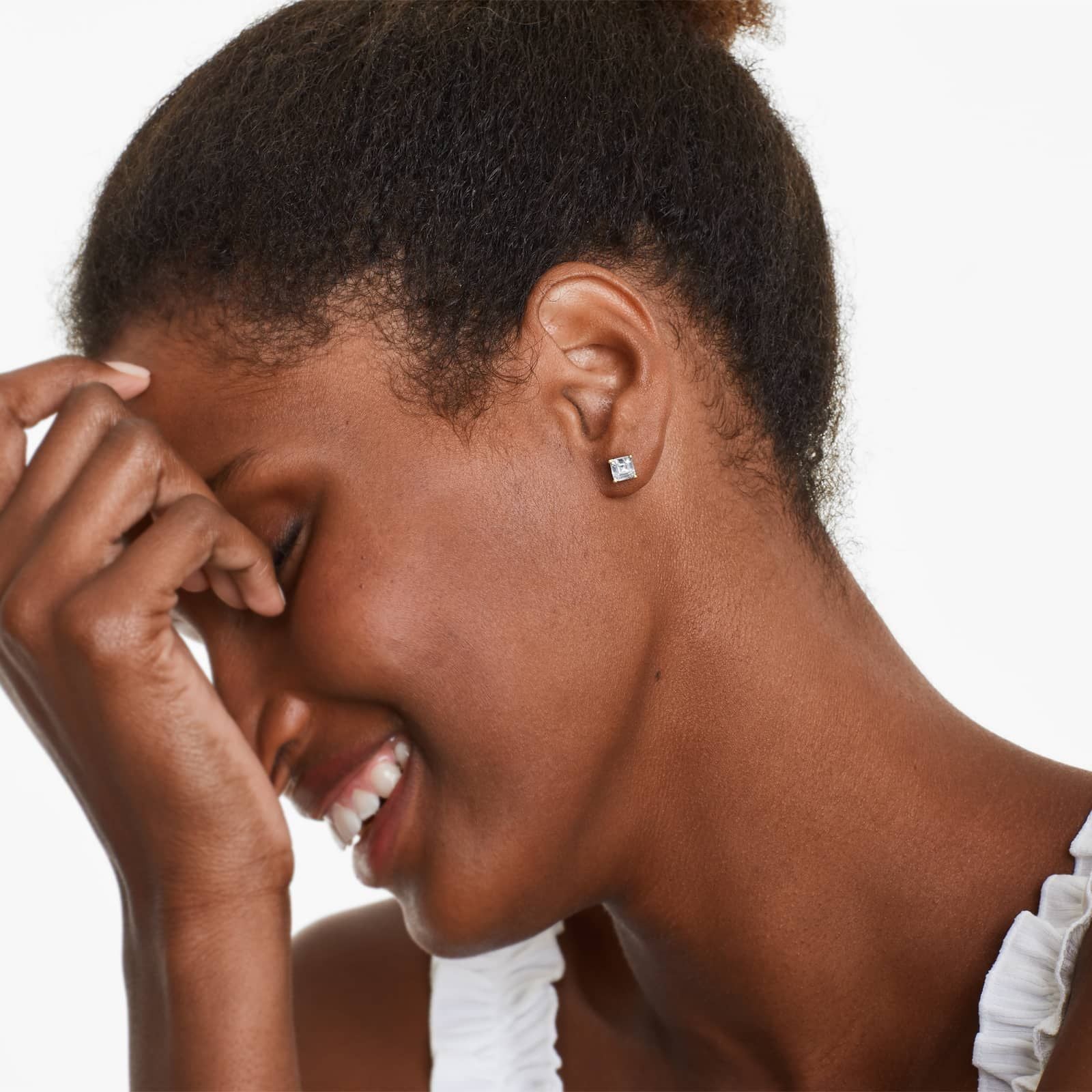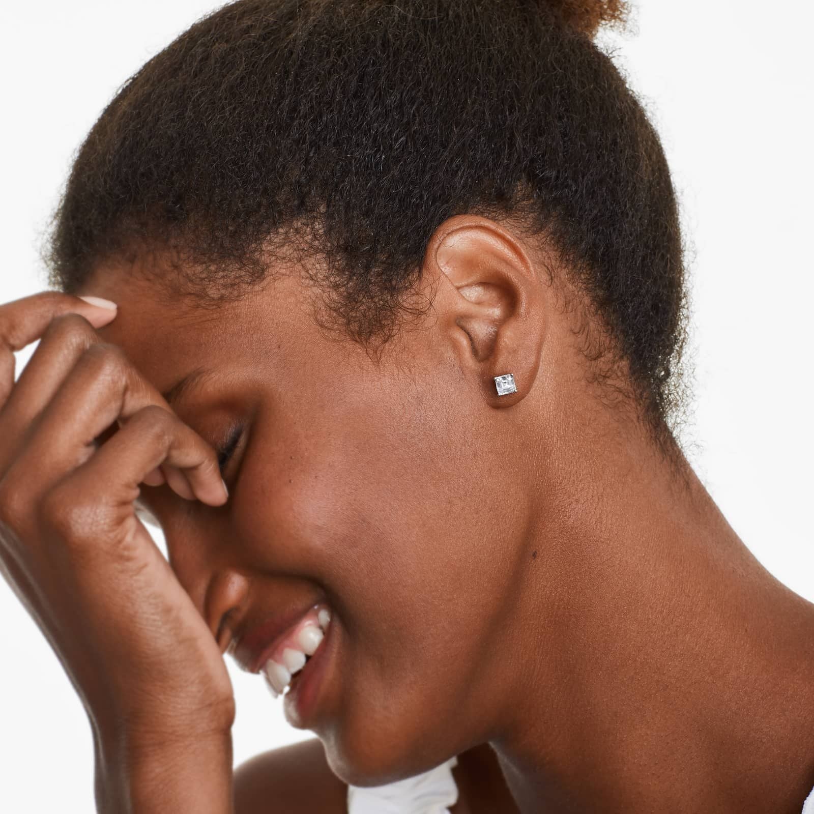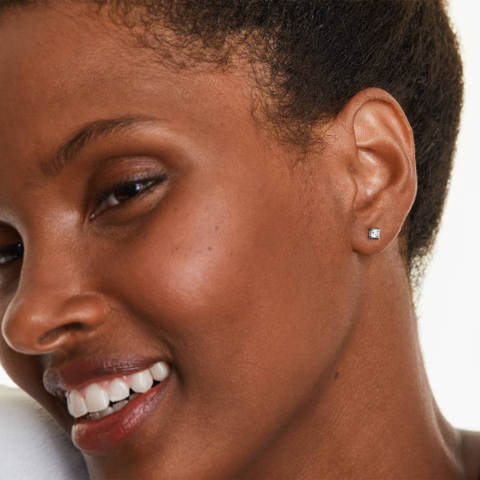Asscher Lab Grown Diamond Push Back Stud Earrings, EF Color, VS Clarity, IGI Certified