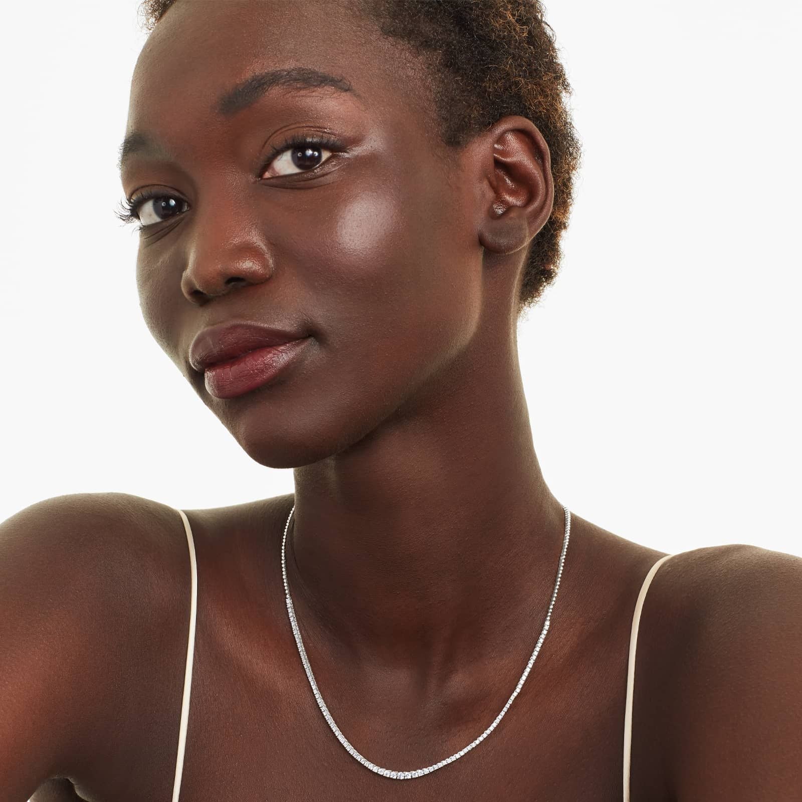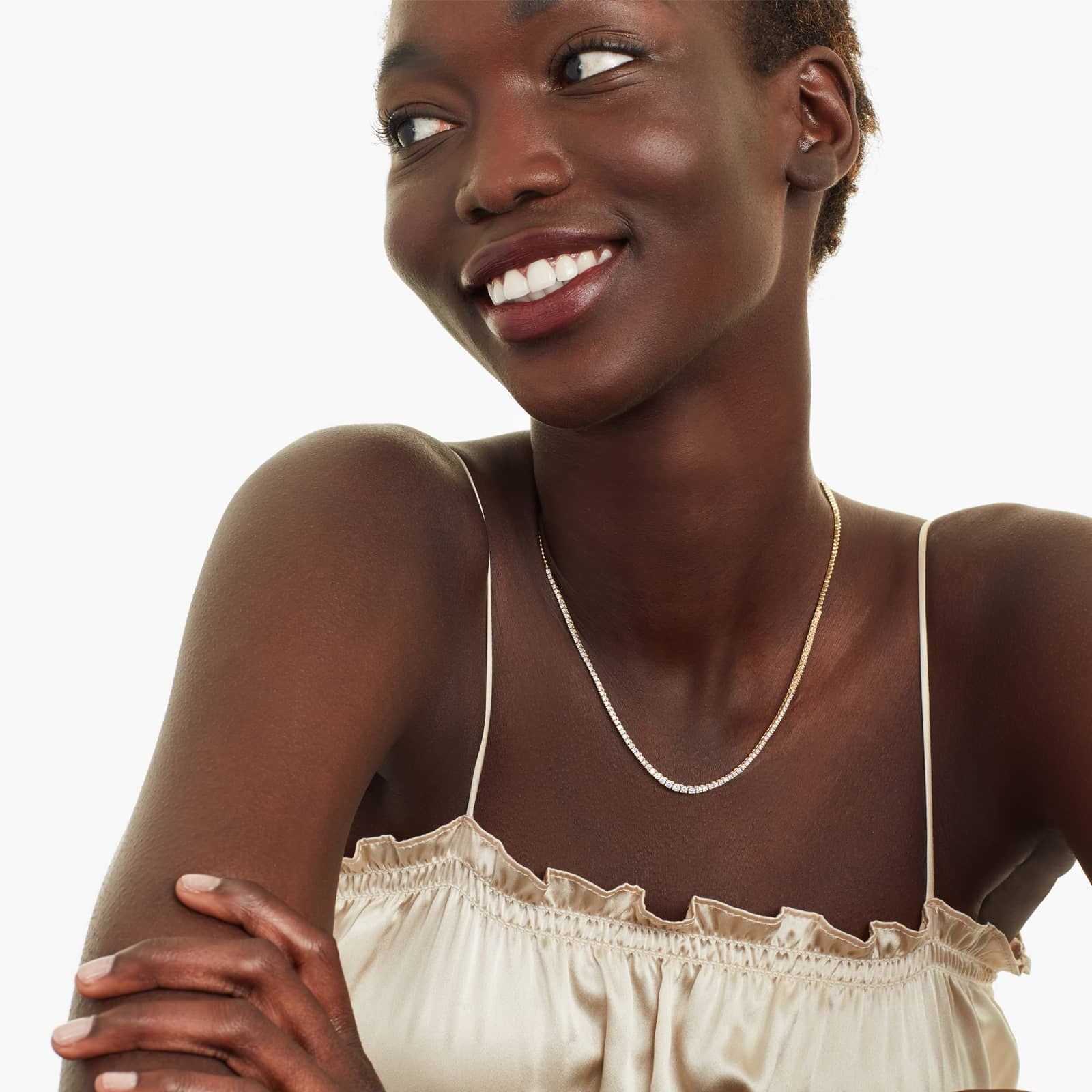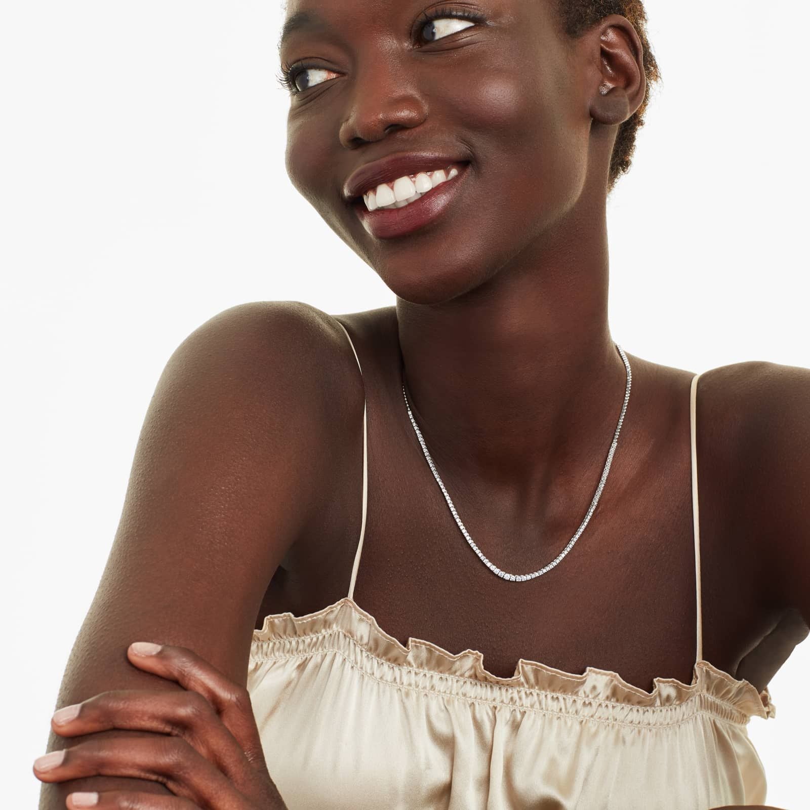 Make this luxurious Riviera necklace your staple piece to evoke effortless sophistication. Round brilliant diamonds gracefully graduate towards the center and are attached to a finely crafted bolo chain that adjusts with a silicone bead slide for versatility.