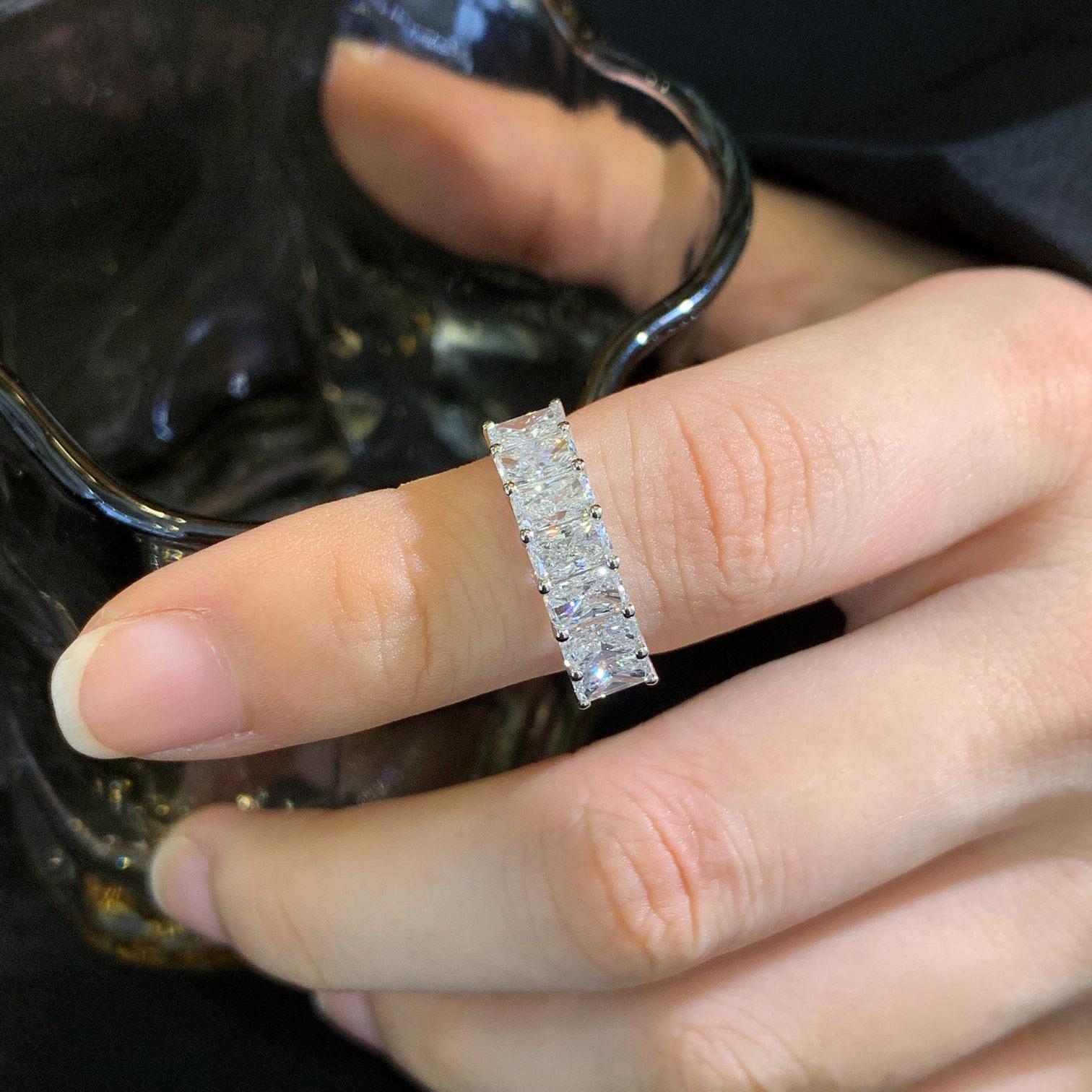 • Elegant 7-stone radiant-cut ring with pavé accents