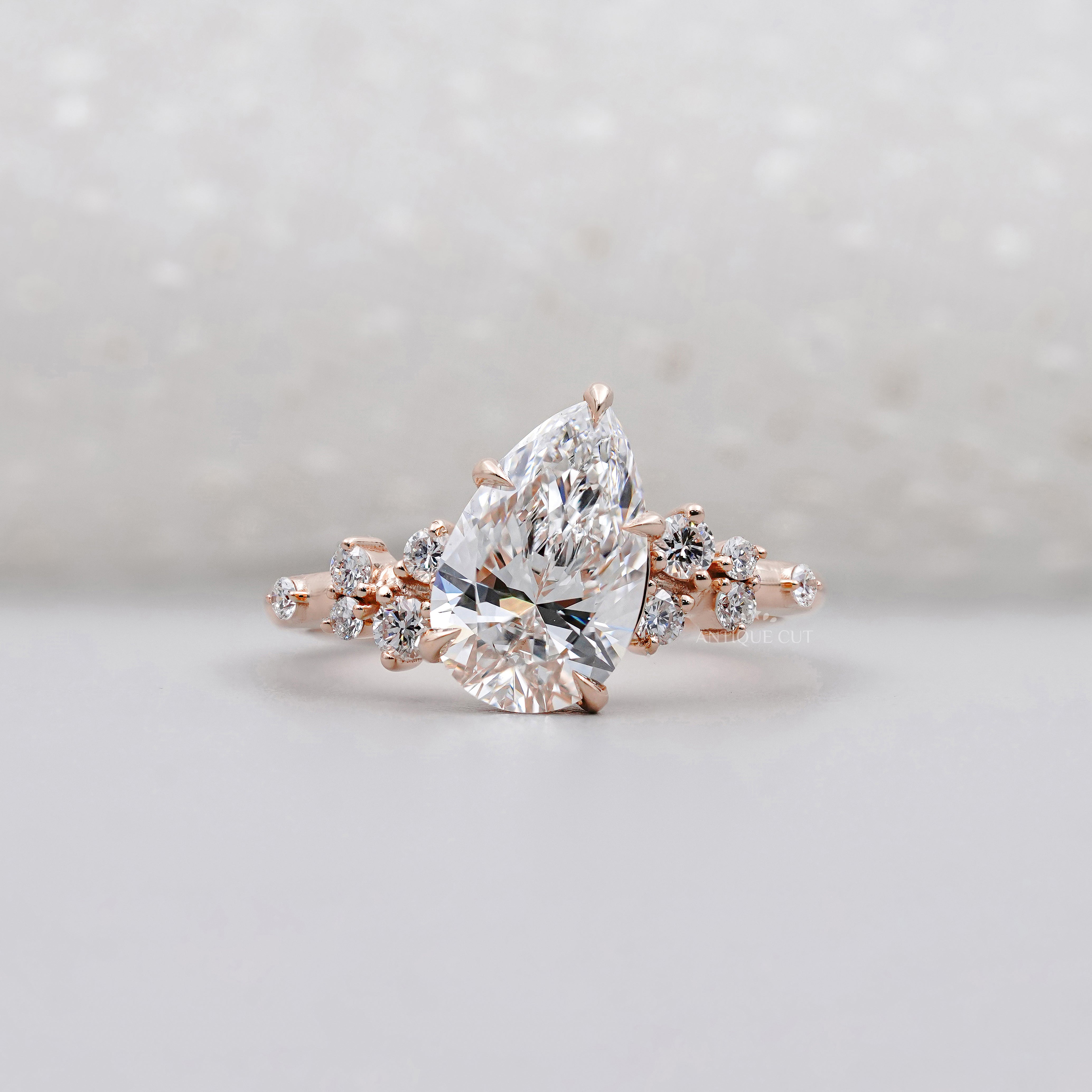Pear Cut 2.30tcw Lab Diamond Engagement Ring | Rose Gold Cluster Side Stones IGI Certified