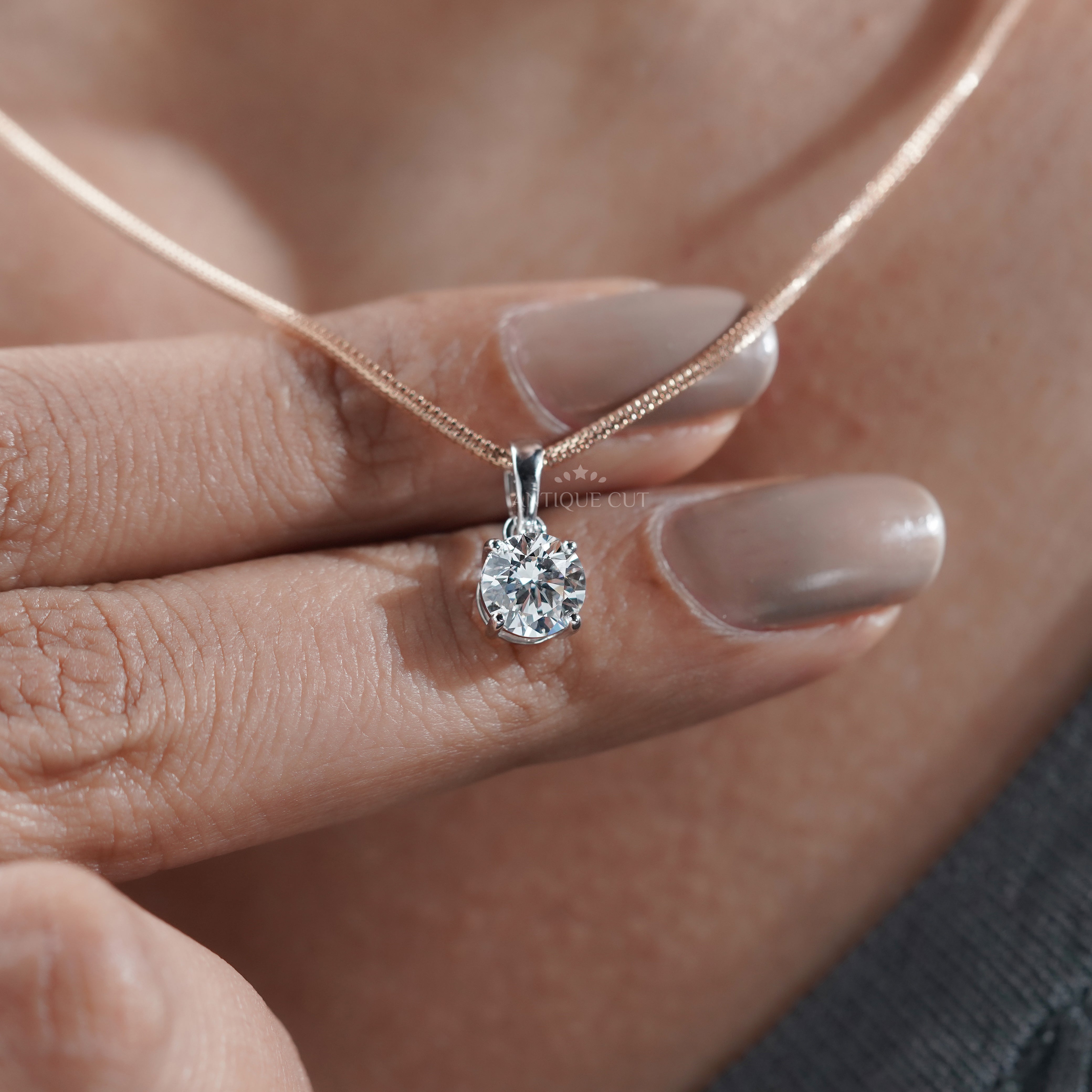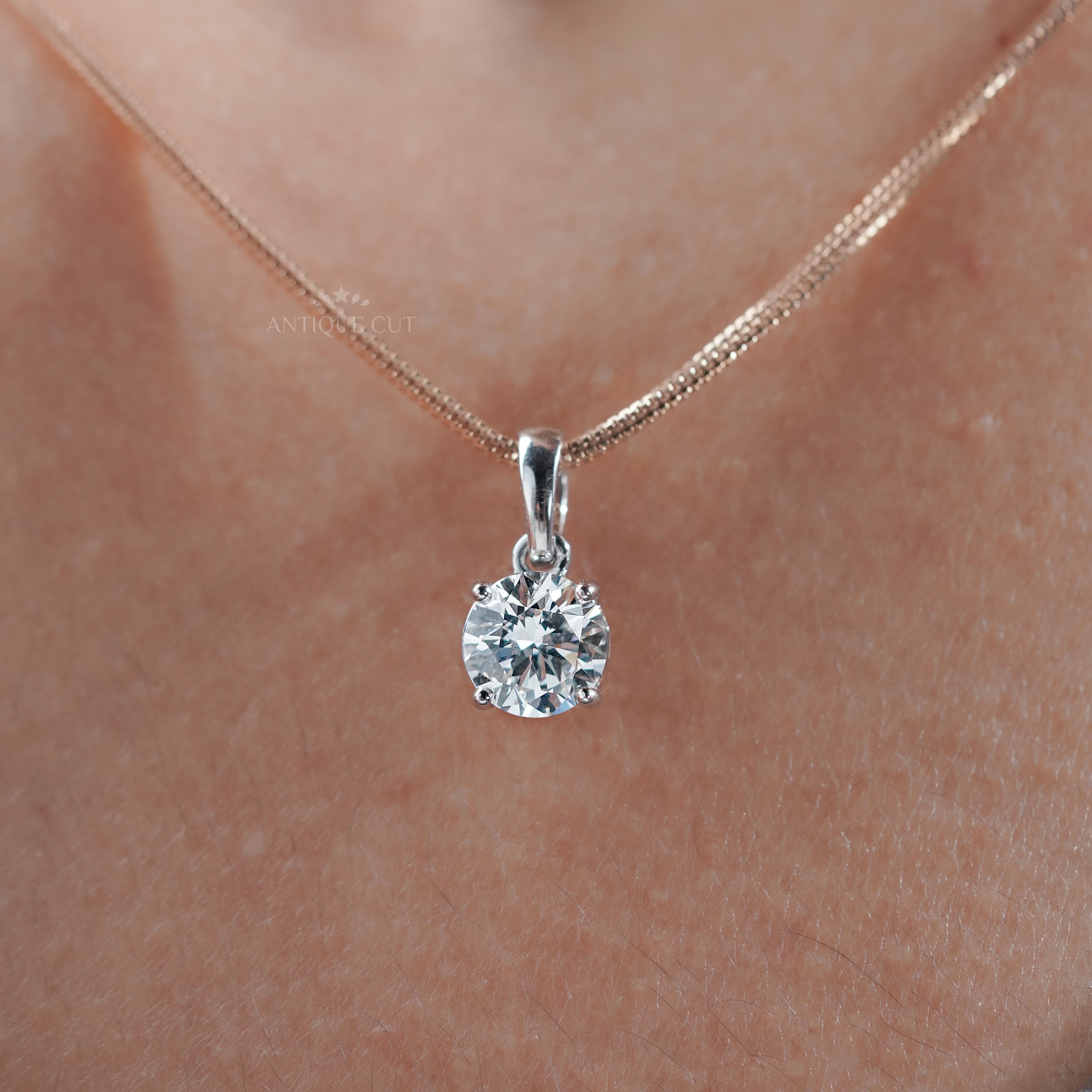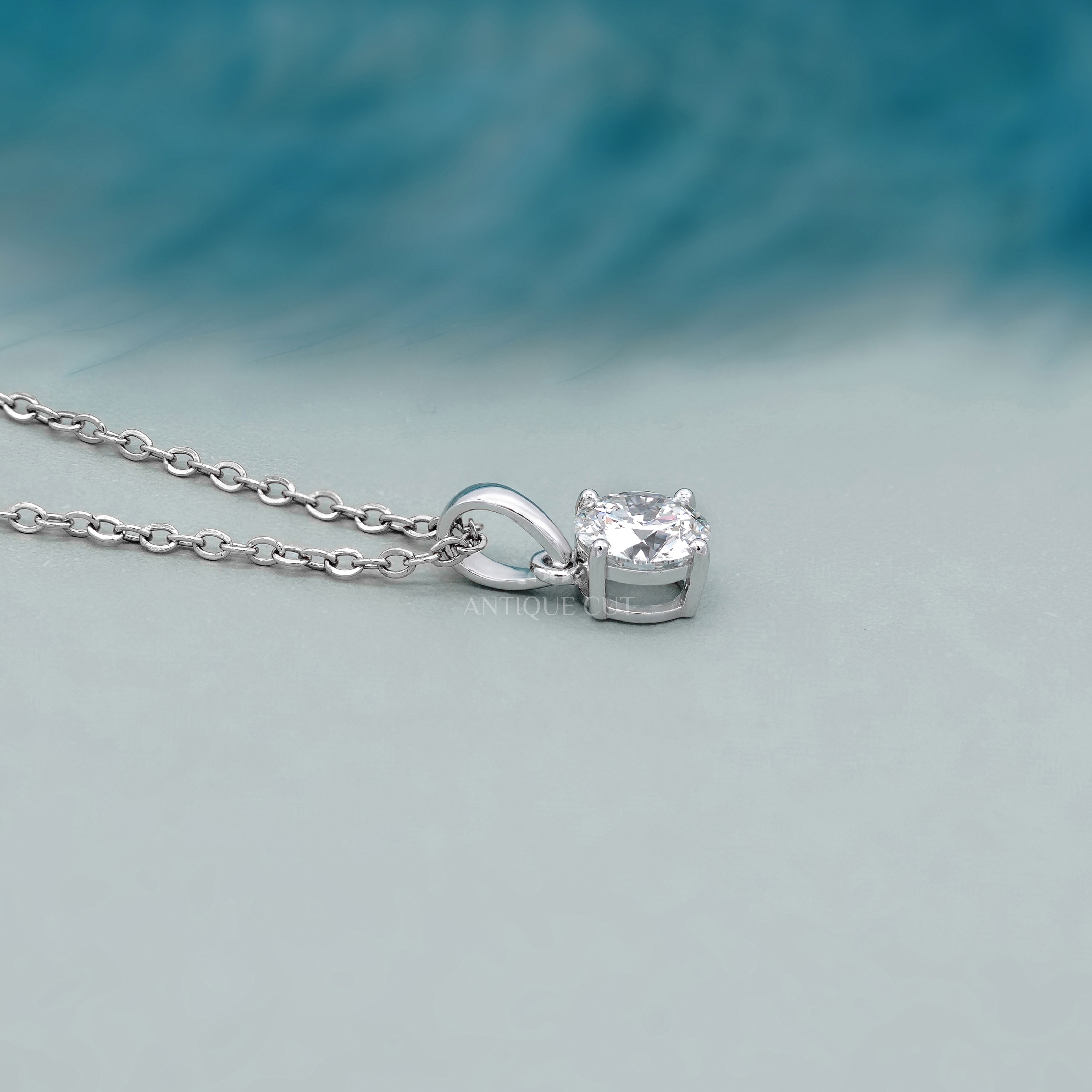 2.00 Carat Round Diamond Pendant Necklace | Classic Solitaire Diamond Necklace | 14K White Gold Prong Set