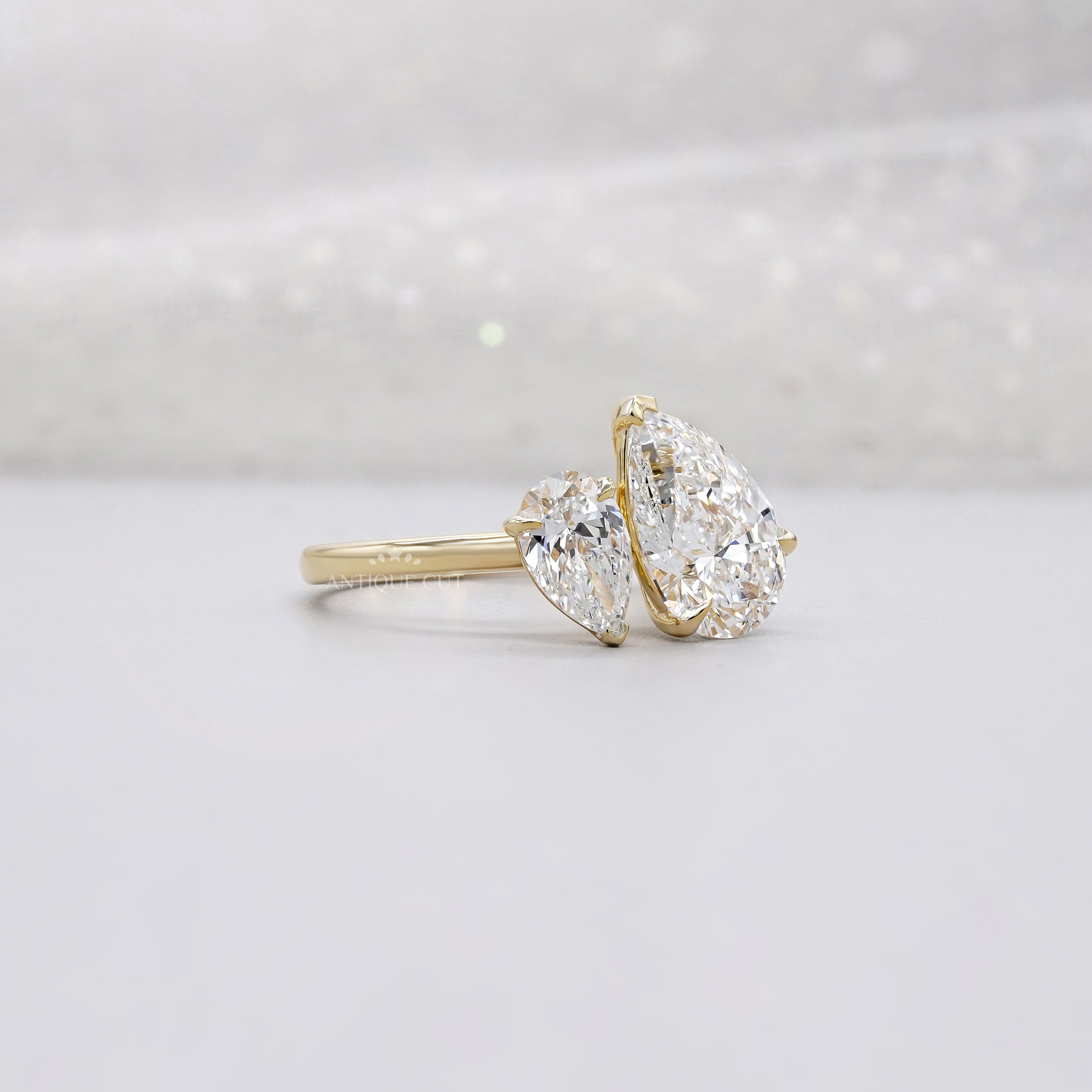 3.10tcw Pear Toi Et Moi Lab Grown Diamond Ring | Two Stone Yellow Gold | IGI Certified