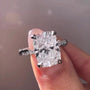Timeless 3.30tcw Cushion-cut lab-grown diamond ring with a 3.00ct center and 0.30ct round twisted band. IGI certified, D-E-F color, VVSβVS clarity, and available in 10k, 14k, or 18k gold.