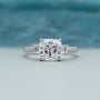 4.00ct Cushion Cut Diamond Engagement Ring | Three Stone Ring with 0.30ct Side Diamonds | Platinum / White Gold Bridal Jewelry
