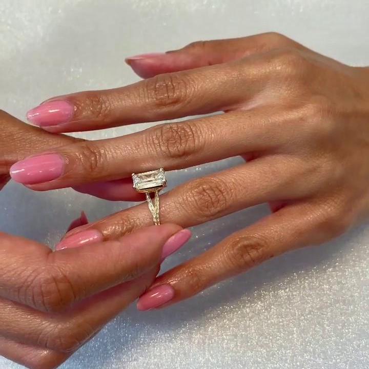 4.30 Carat Emerald Lab Diamond Ring | IGI Certified | Modern Split Shank | White & Yellow Gold