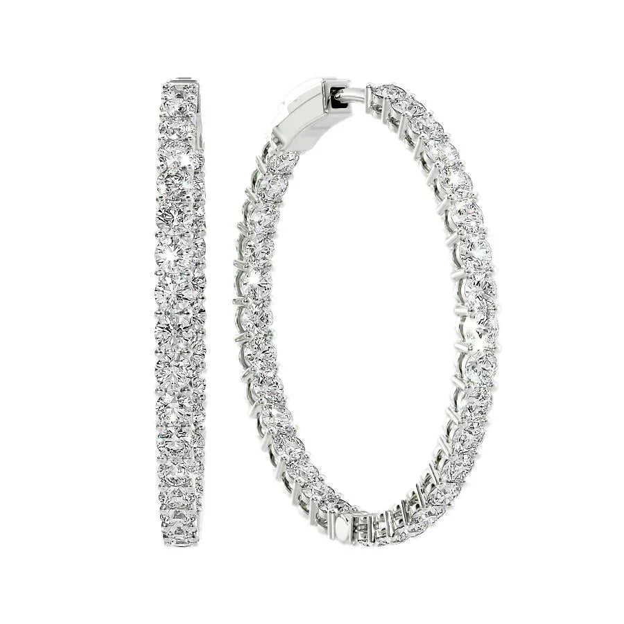 Round Lab Grown Diamond 40mm Eternity Pave Hoops Earring, EF Color, VS Clarity, IGI Certified
