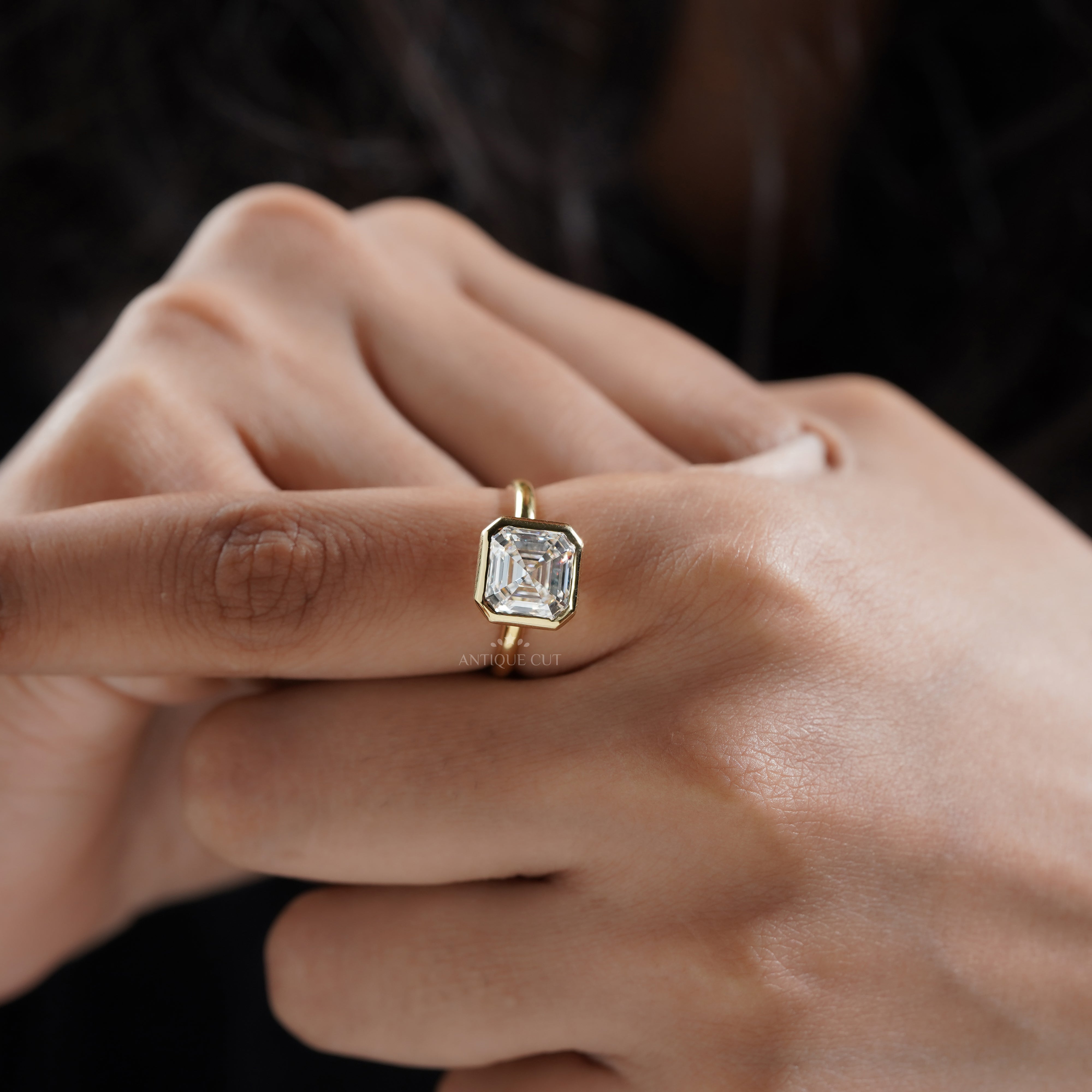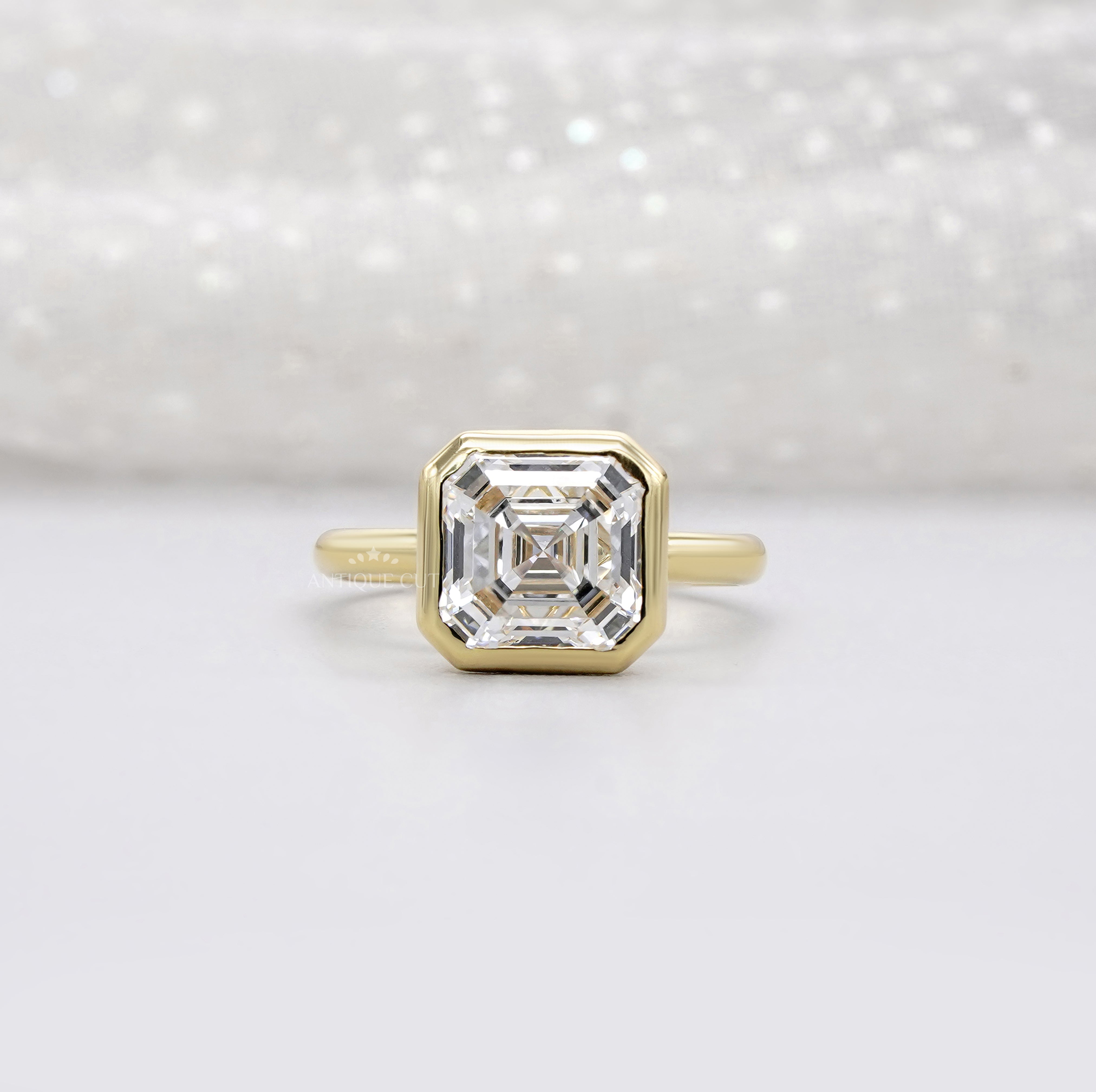 4.00ct Asscher Lab-Grown Diamond Bezel Engagement Ring | Yellow Gold Solitaire | IGI Certified Ethical Step-Cut Diamond Ring