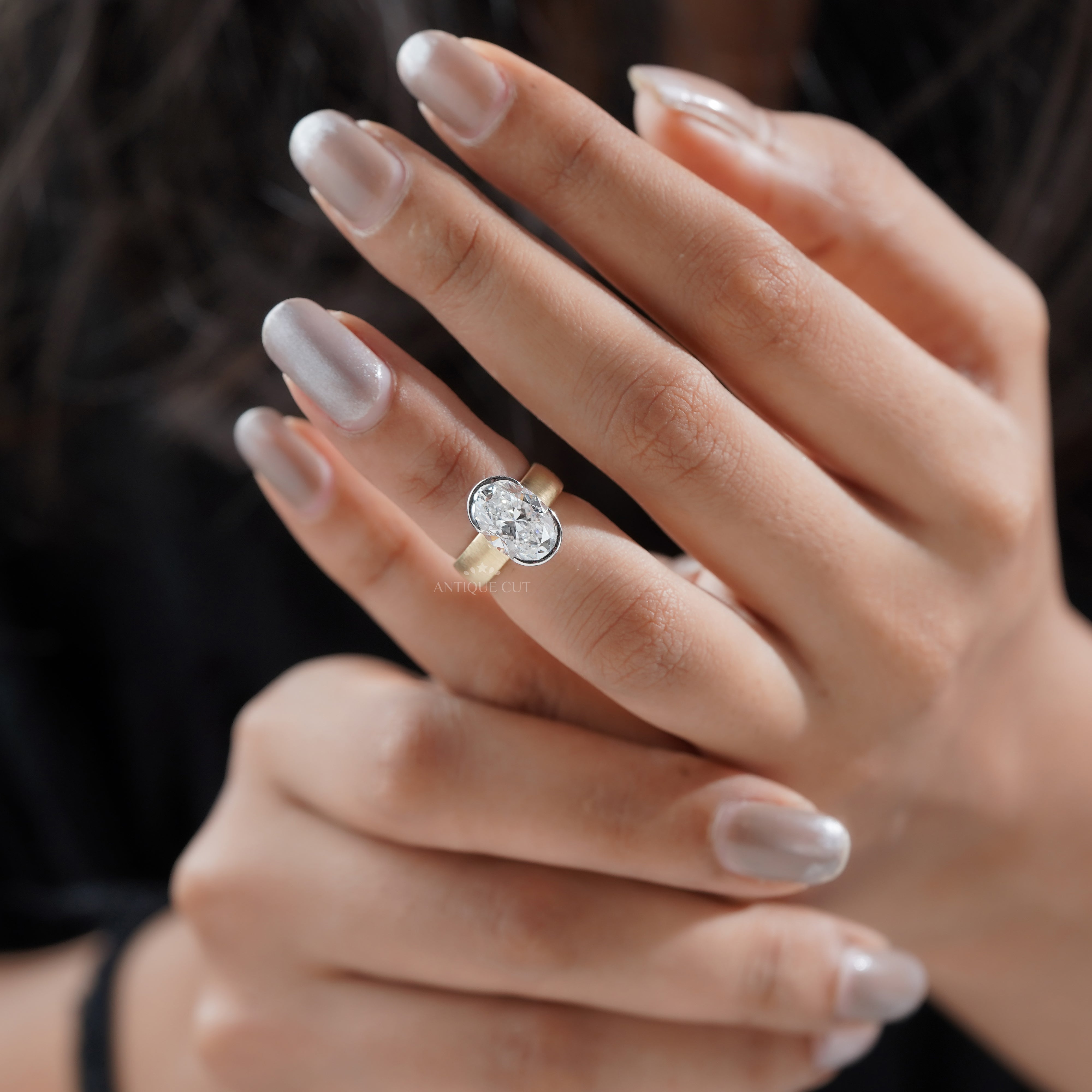 4ct Oval Lab Grown Diamond Bezel Engagement Ring | Paper Matte Finish | Two-Tone Gold | IGI Certified