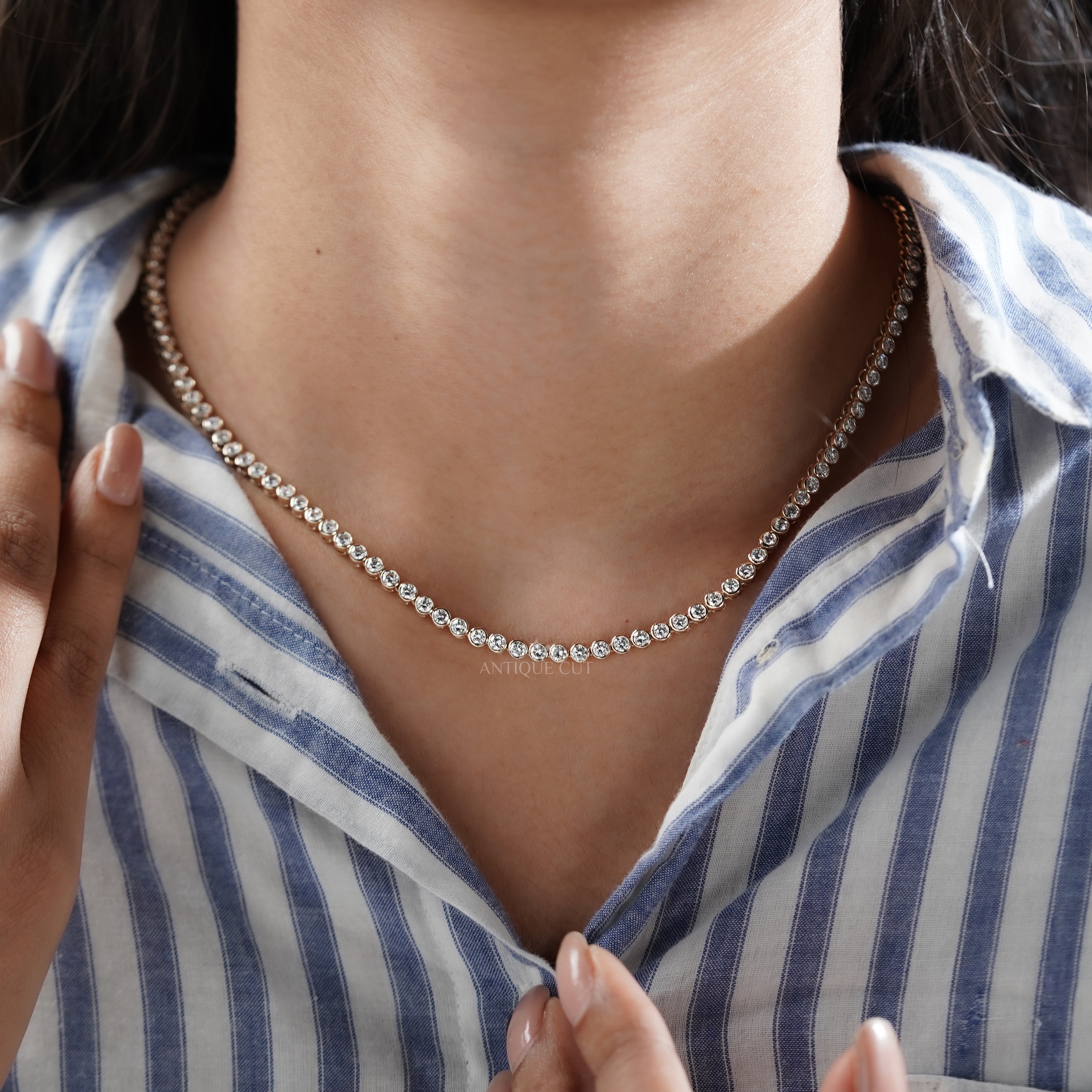 7.50tcw Diamond Tennis Necklace | Bezel Set Round Brilliant Diamonds in 14K Gold | Classic Dainty Tennis Chain | Gift for Her