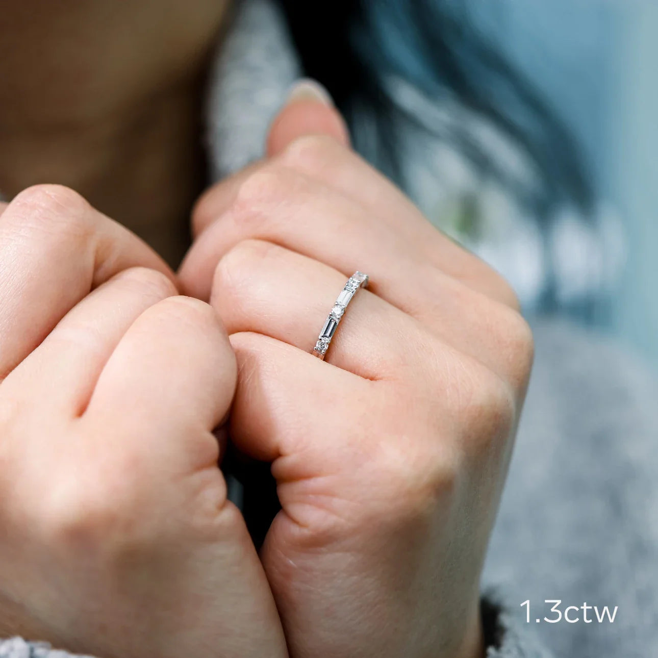 Expertly crafted with lab-grown diamonds, this eternity band features a stunning combination of baguette and round diamonds. With a sparkling EF color and VS clarity, this band is certified by the IGI to ensure the highest quality. Upgrade your jewelry collection with this timeless and sustainable piece.