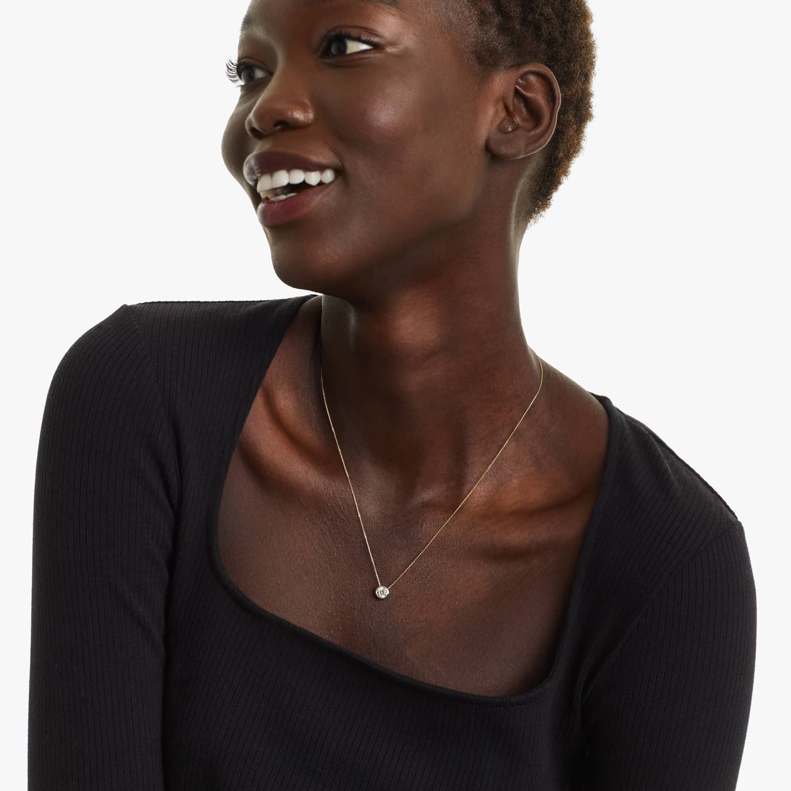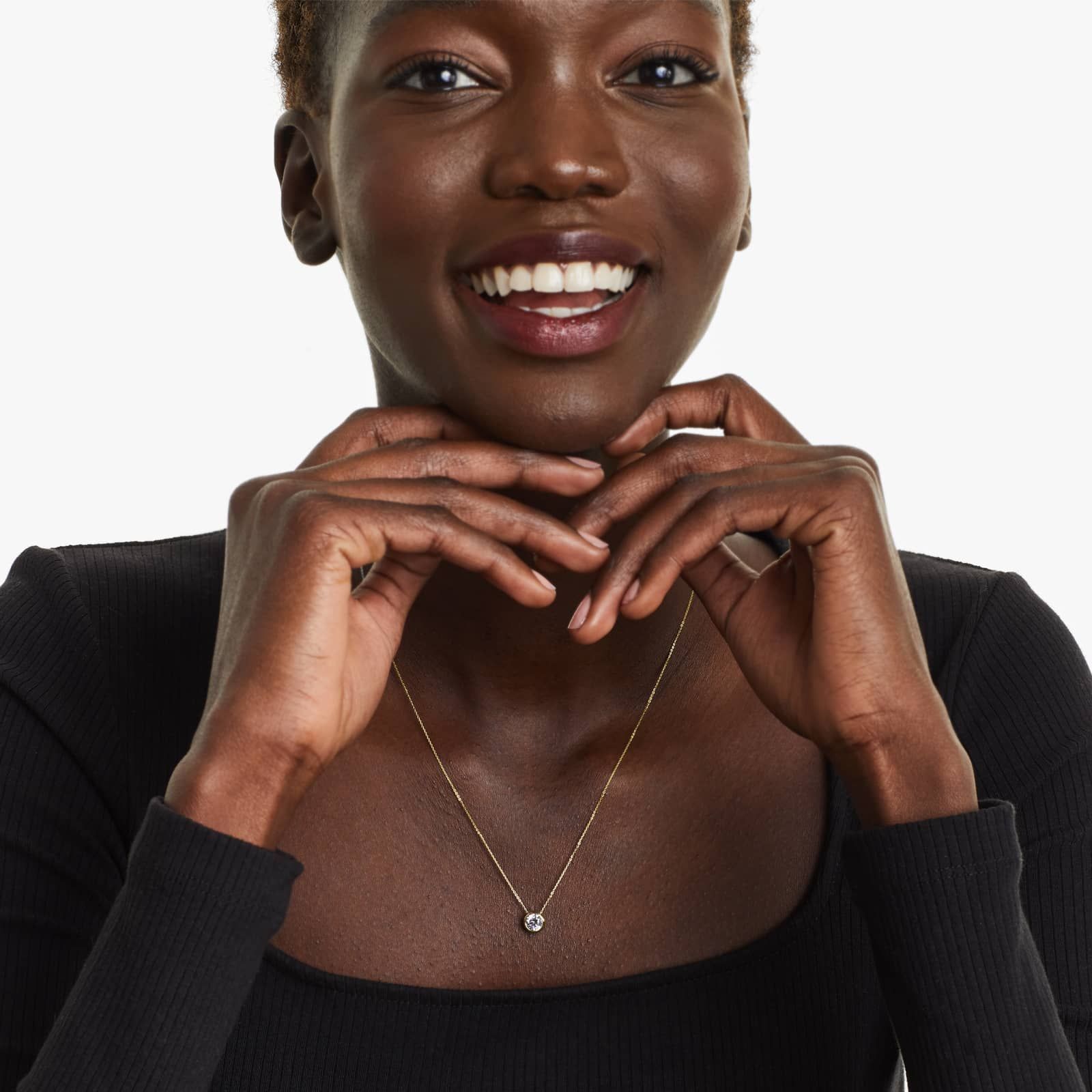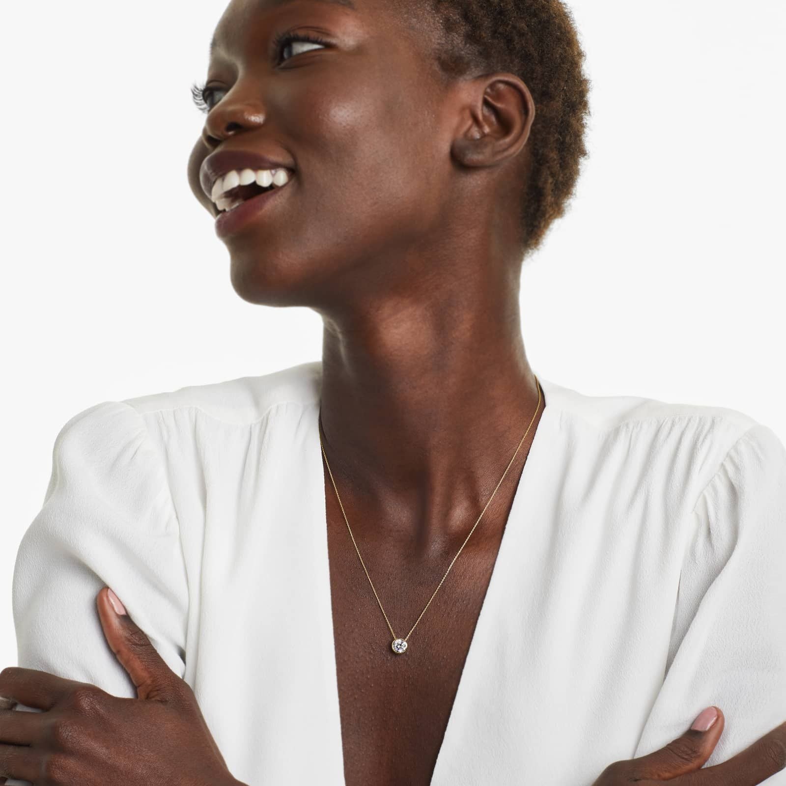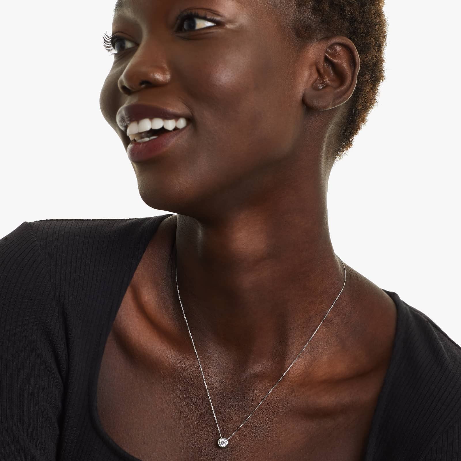 This pendant features a stunningly brilliant round lab grown diamond, carefully set in a sleek bezel style. With an EF color and VS clarity, this diamond exudes pure elegance. Certified by IGI, this pendant is both timeless and responsibly-sourced.