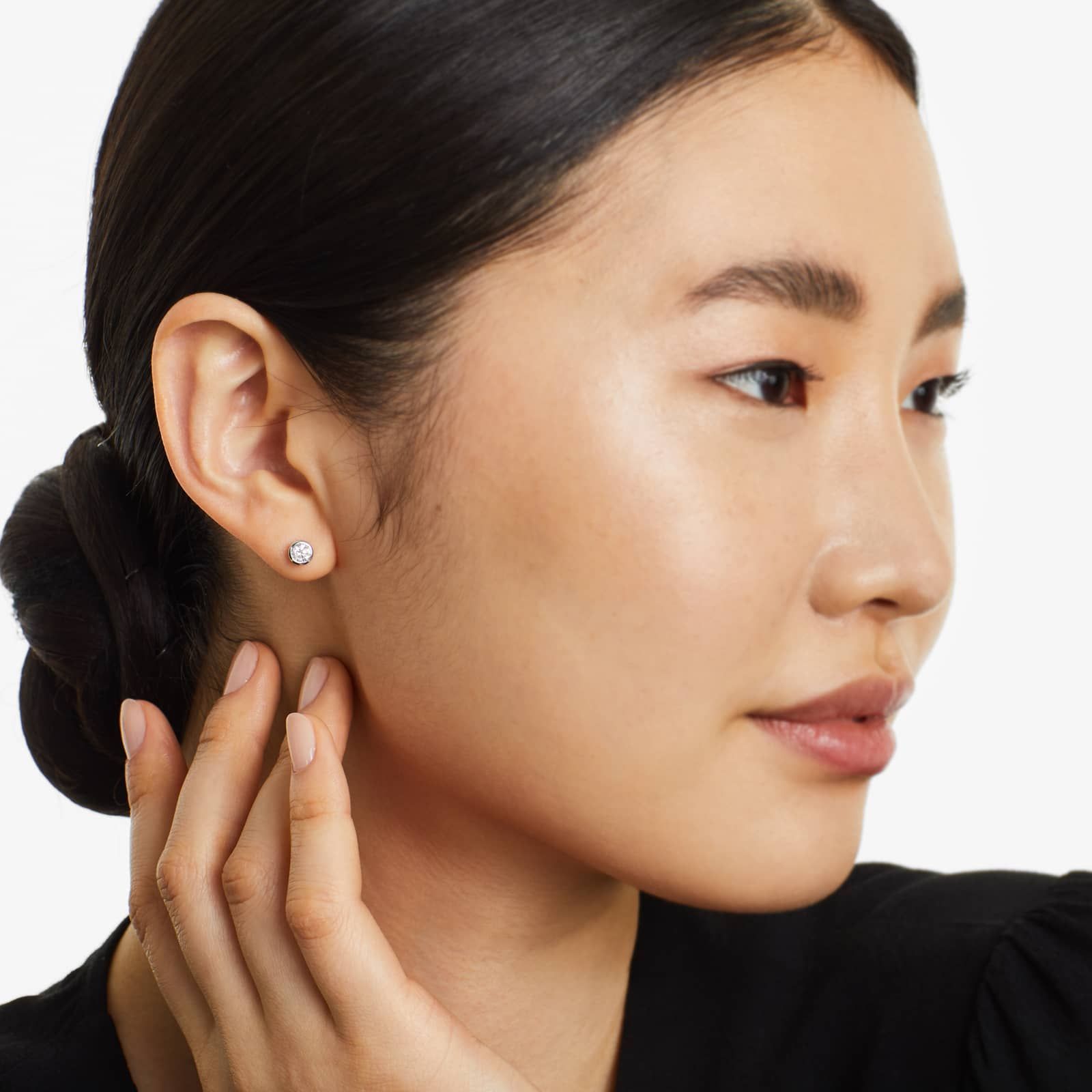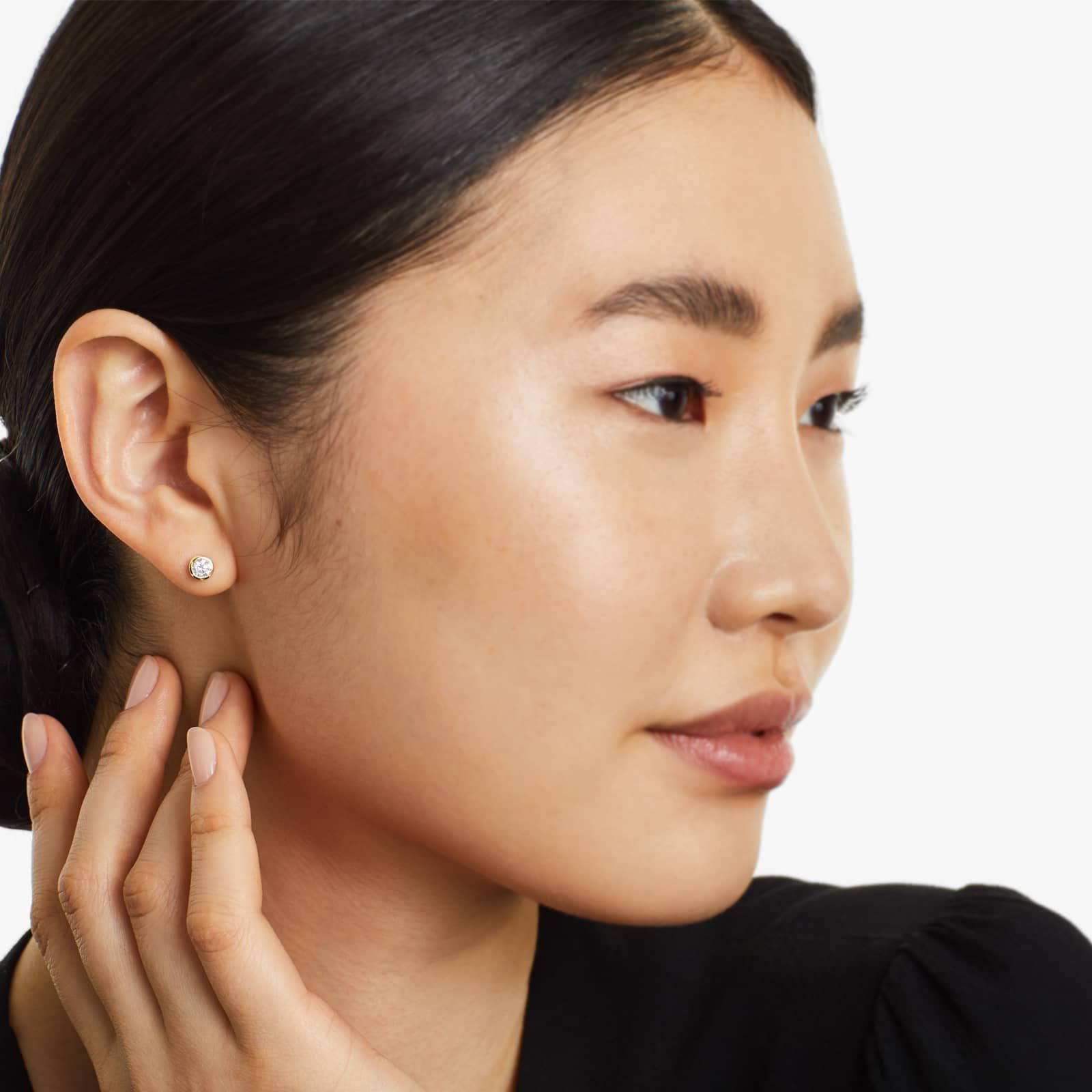 Expertly crafted with precision and sustainability in mind, the Round Lab Grown Diamond Bezel Set Stud Earrings offer a stunning EF color and VS clarity. Each diamond is IGI certified, guaranteeing superior quality and value. Elevate your look with these timeless and ethically-sourced earrings.