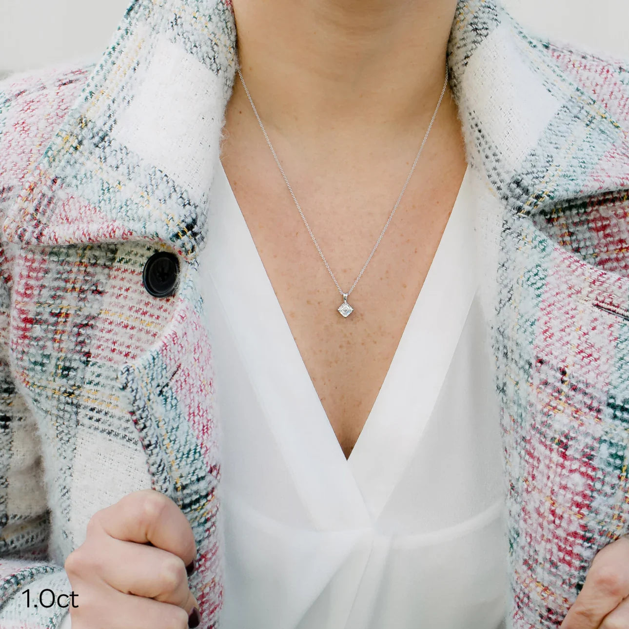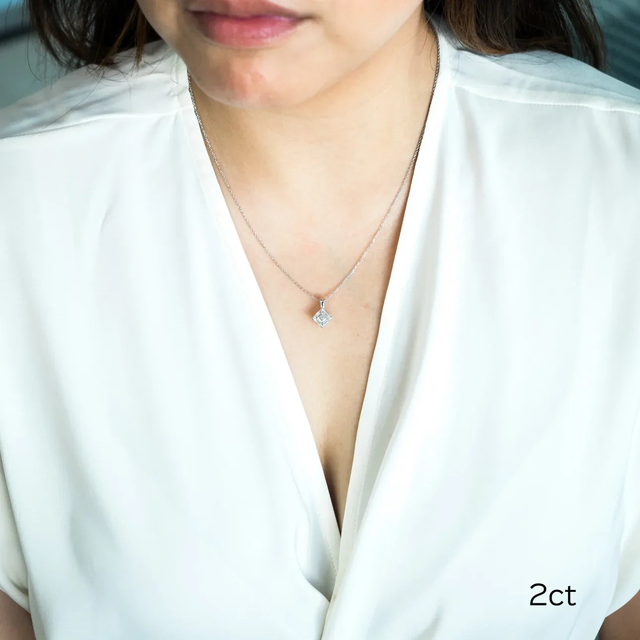 Asscher Lab Grown Diamond Classic Pendant With Chain, EF Color, VS Clarity, IGI Certified