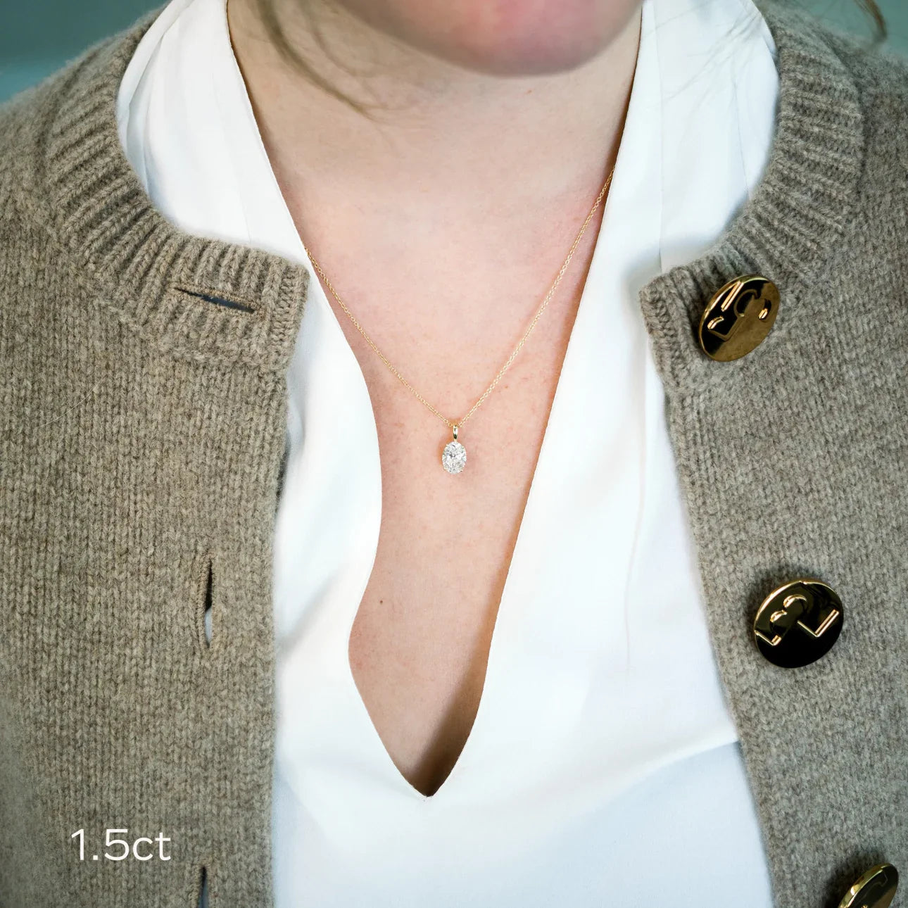 Oval Lab Grown Diamond Classic Pendant With Chain, EF Color, VS Clarity, IGI Certified