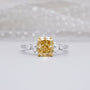 • Rare 2.50ct Fancy Yellow cushion-cut center with 0.70ct side diamonds