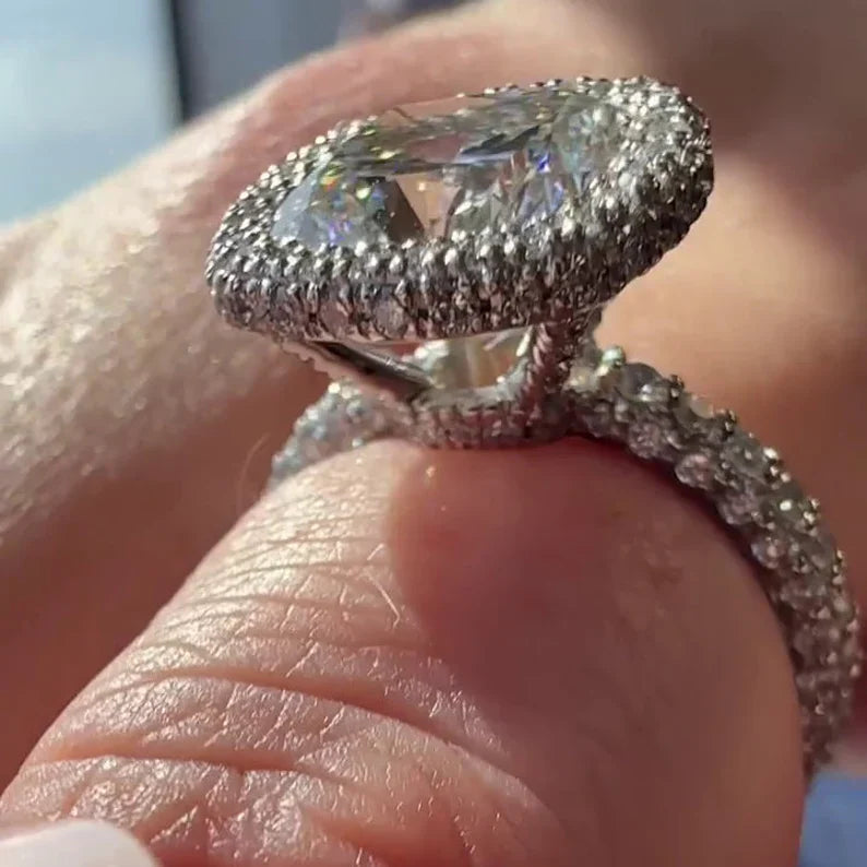 • 5.50tcw total brilliance with full halo design for maximum sparkle