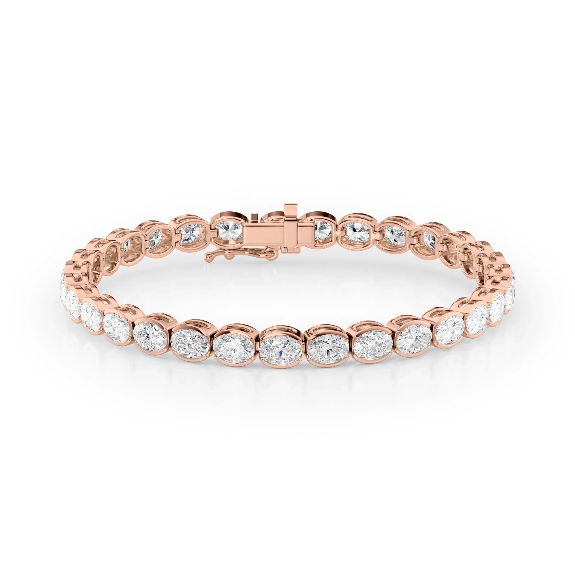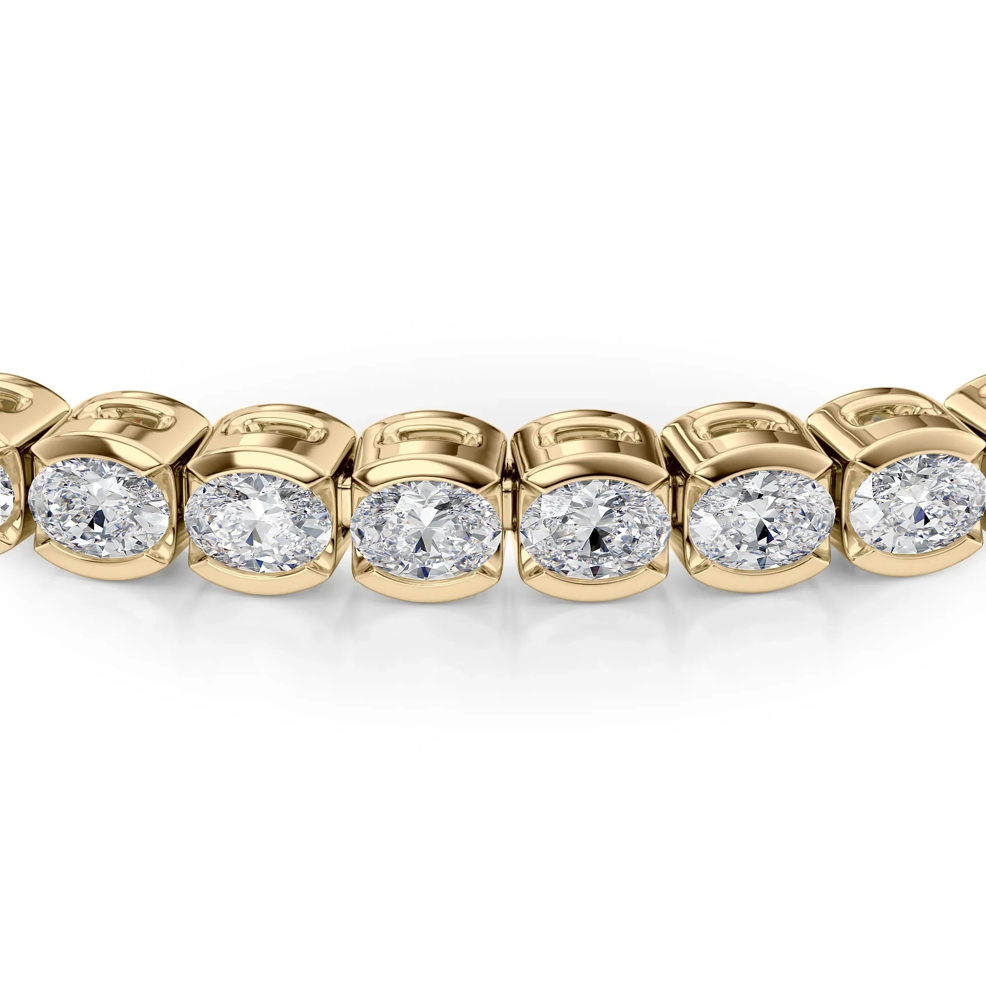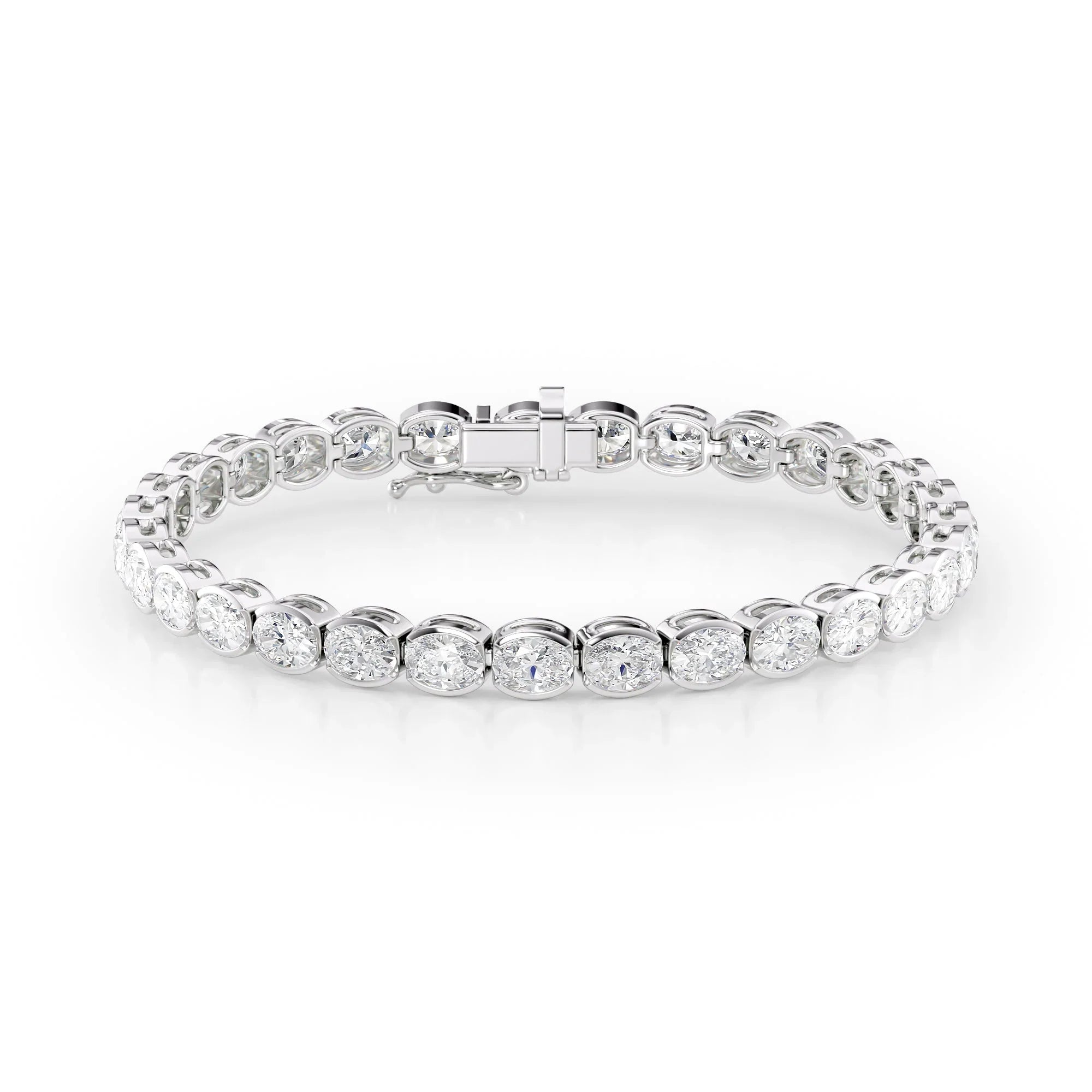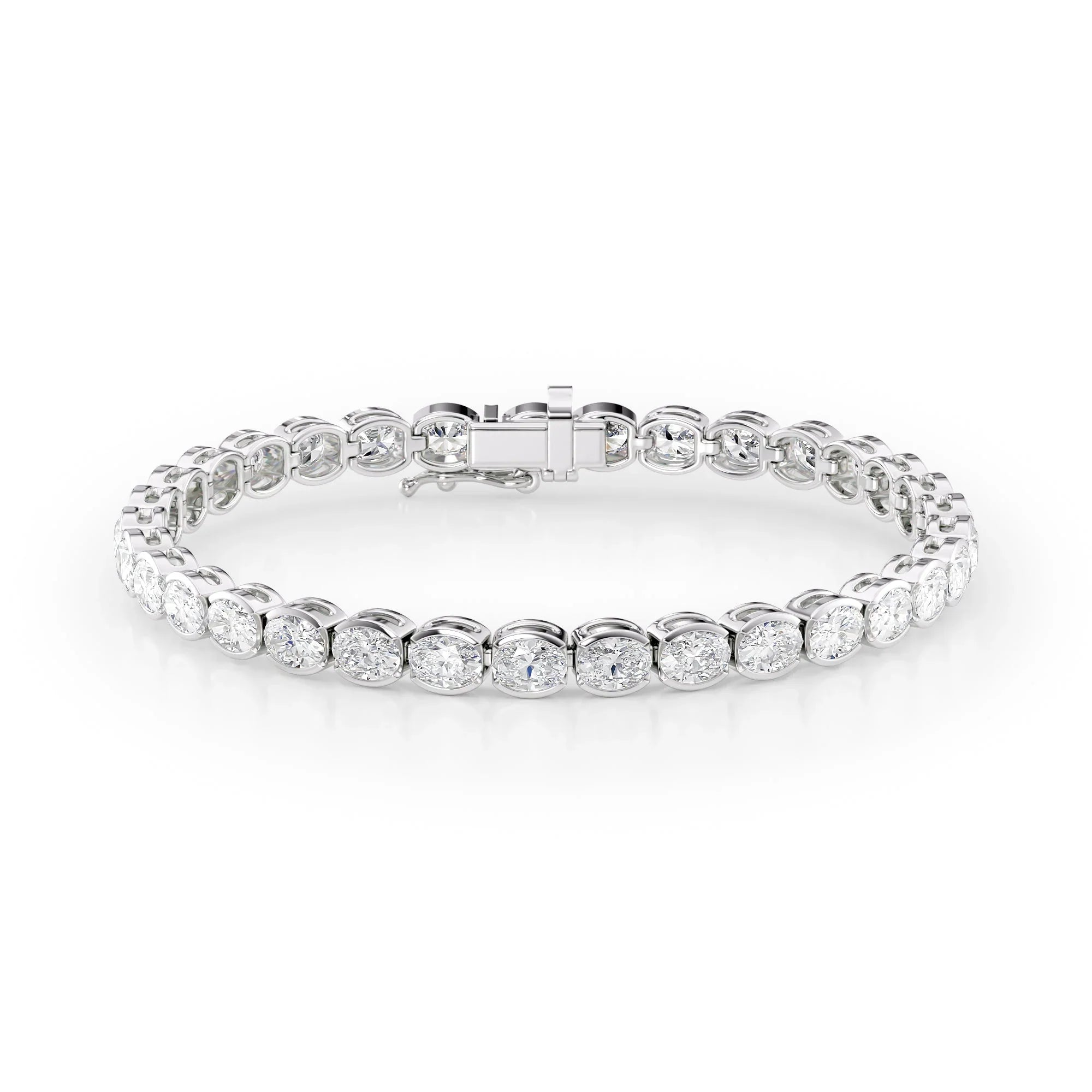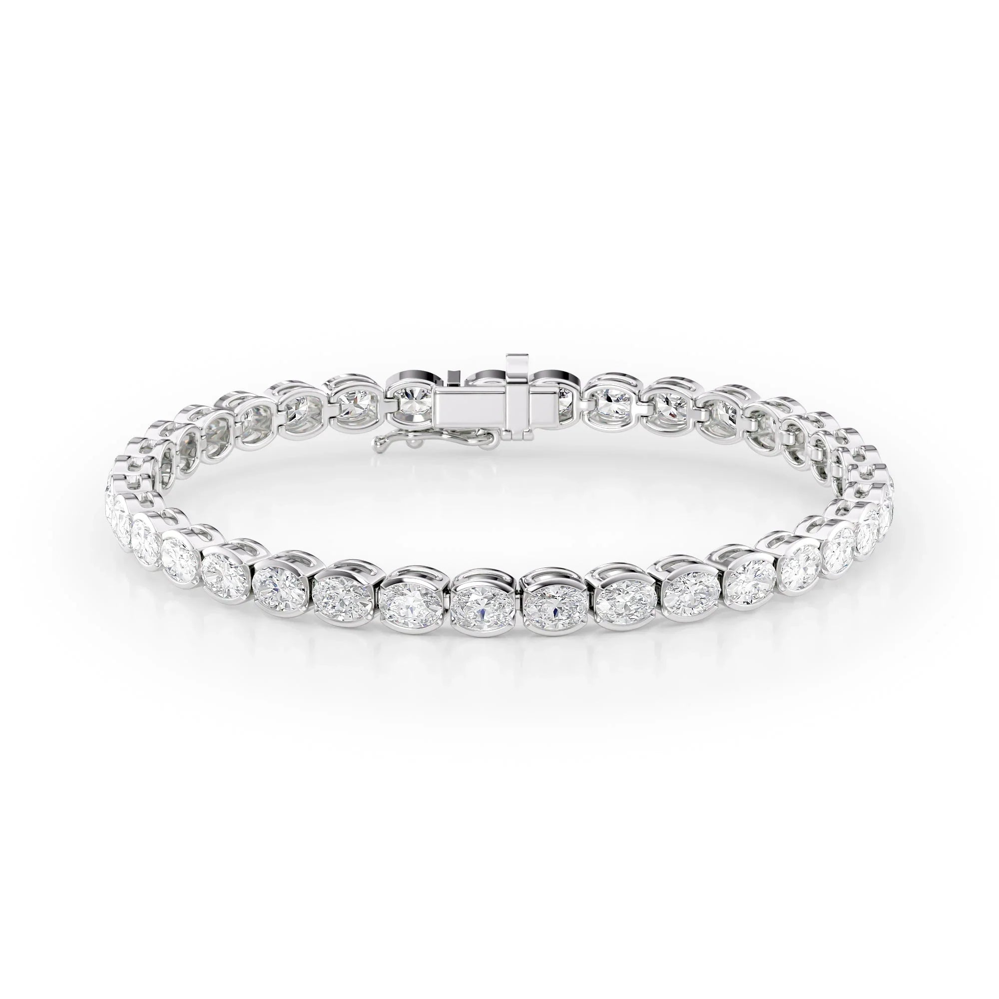 Crafted with precision, this Oval Lab Grown Diamond East West Half Bezel Tennis Bracelet offers a stunning EF Color and VS Clarity. Certified by IGI, this bracelet boasts exceptional quality and brilliance. Elevate your style with this unique, ethically and sustainably sourced lab-grown diamond piece.