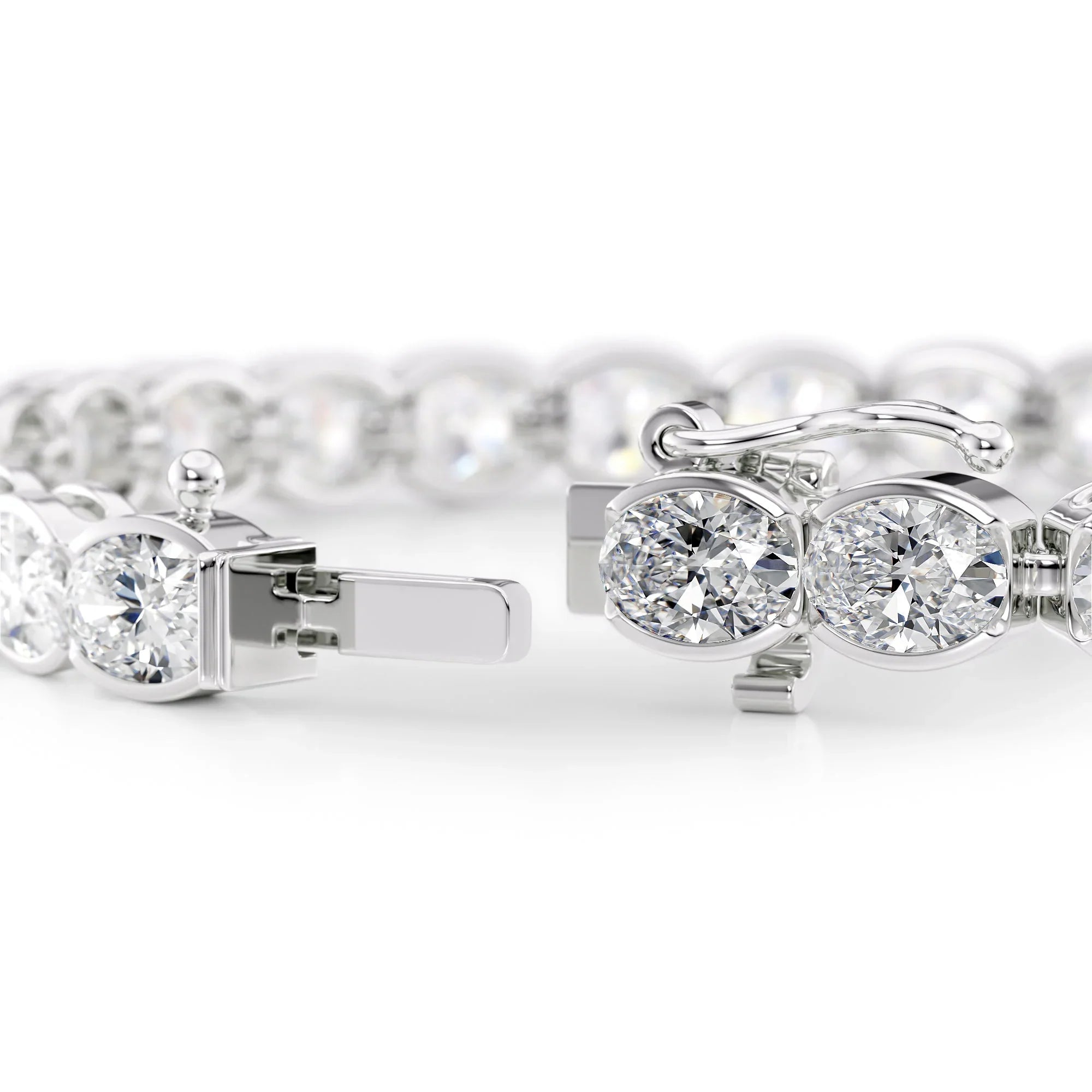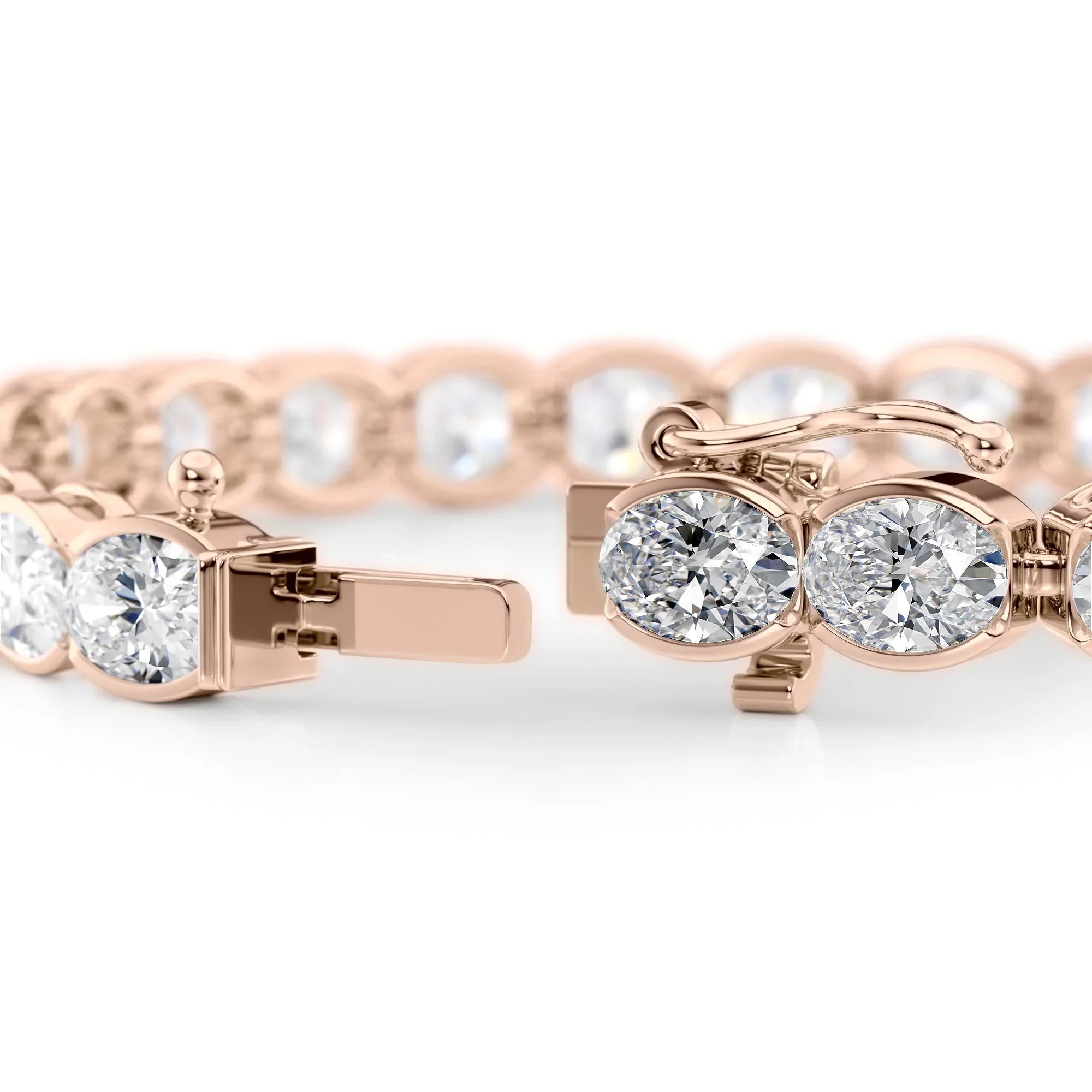 Oval Lab Grown Diamond East West Half Bezel Tennis Bracelet, EF Color, VS Clarity, IGI Certified