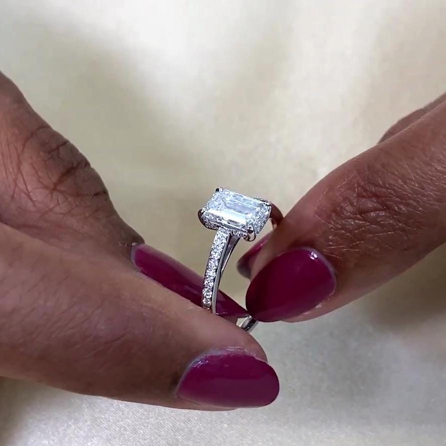 1.50tcw Emerald Lab Diamond Engagement Ring | Hidden Halo | Cathedral Setting | IGI Certified