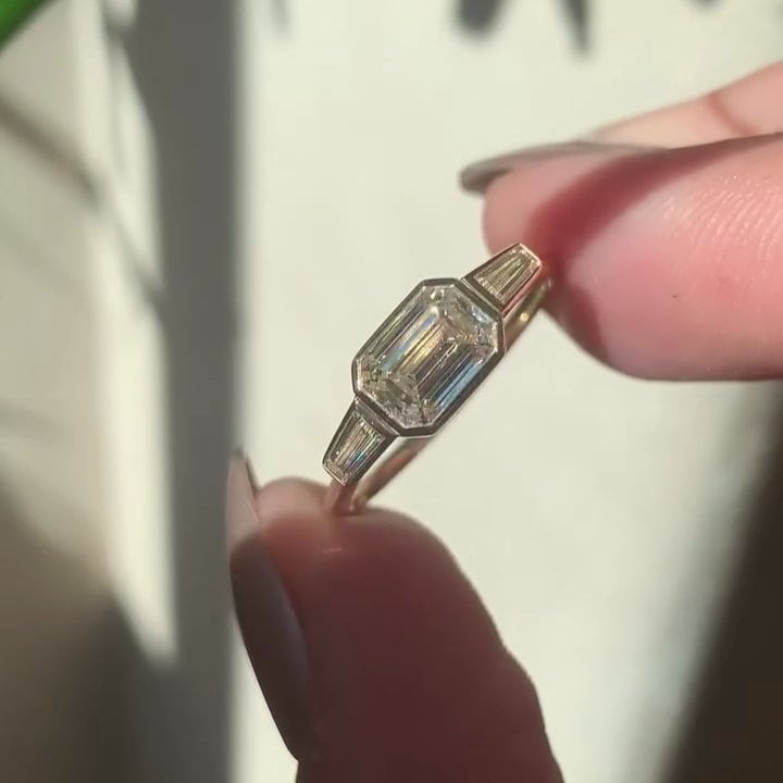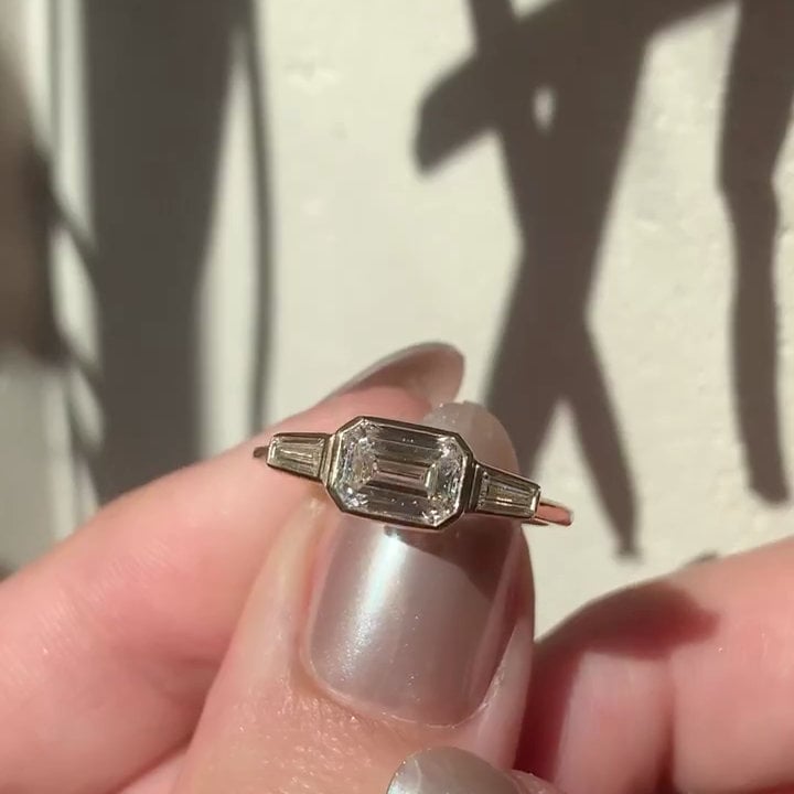 β Unique East-West bezel setting with 1.50ct emerald-cut diamond