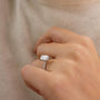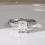 This 2.20tcw lab-grown emerald-cut diamond ring features a 1.70ct center stone with a hidden halo and 0.50ct pavé side diamonds. IGI certified, D-E-F color, VVS–VS clarity. Ethically made in white, yellow, or rose gold, where timeless elegance meets modern sparkle.