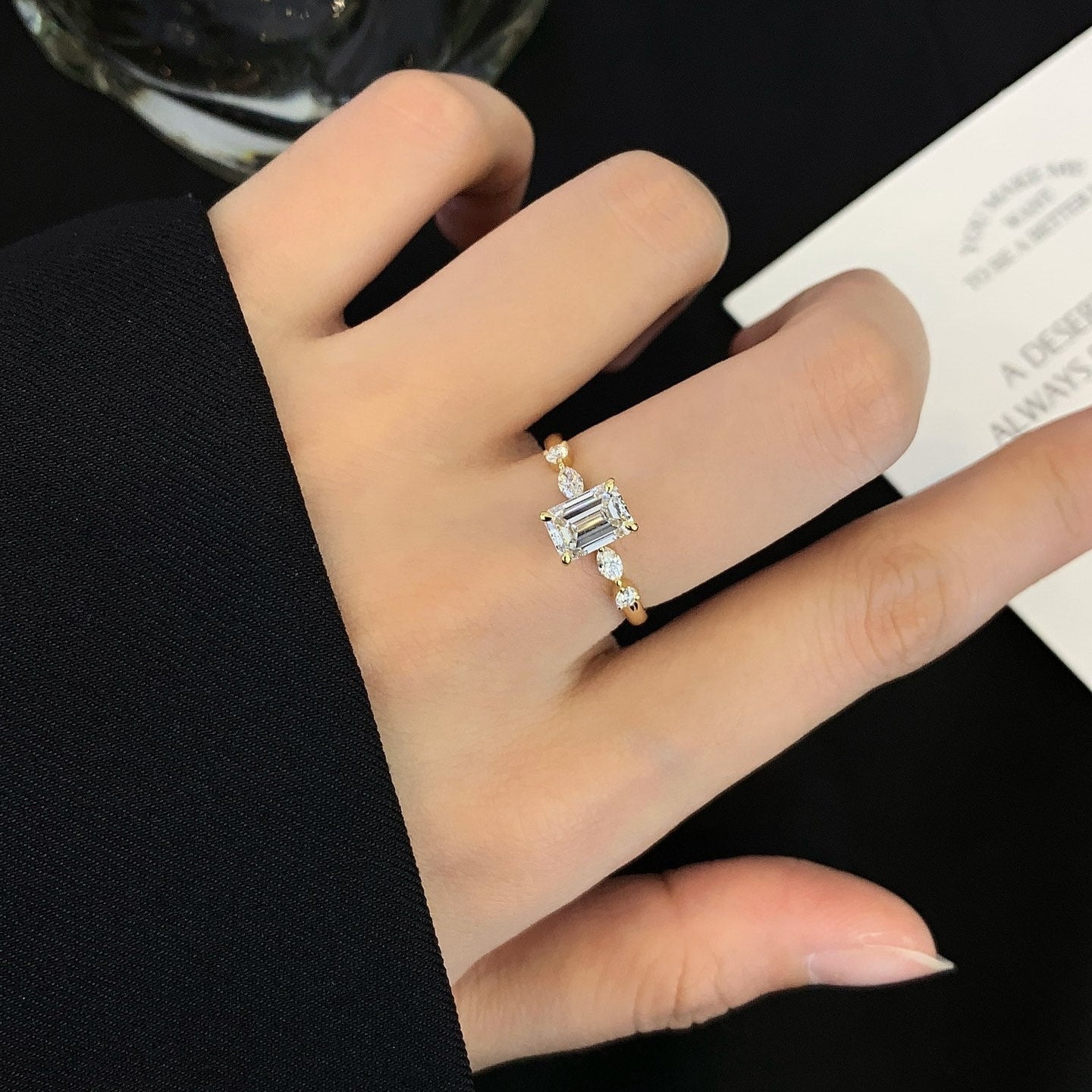 โ Showcases a 1.50ct emerald-cut center for sleek sophistication