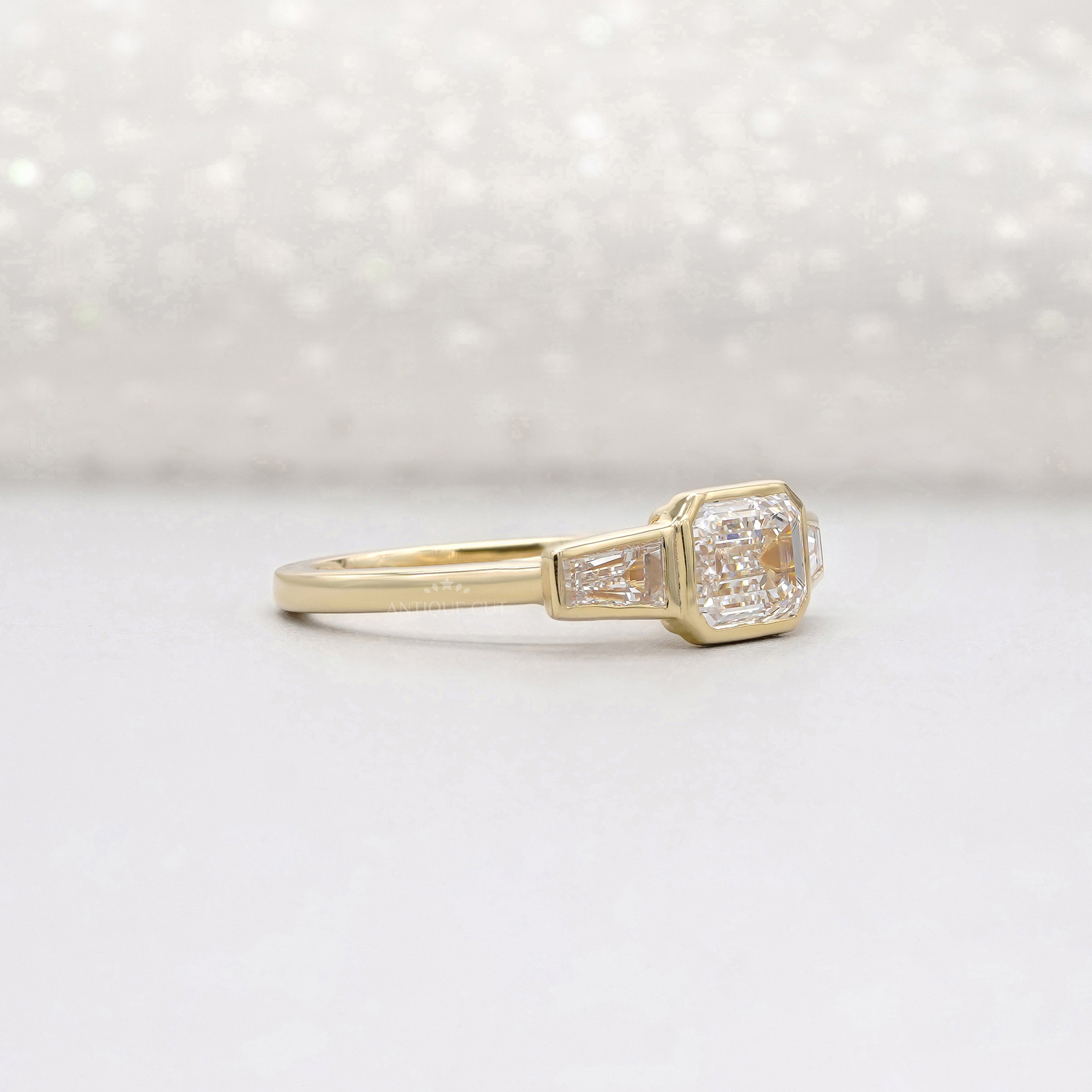 Emerald 2.20tcw Lab Grown Diamond Three Stone Engagement Ring in Yellow Gold
