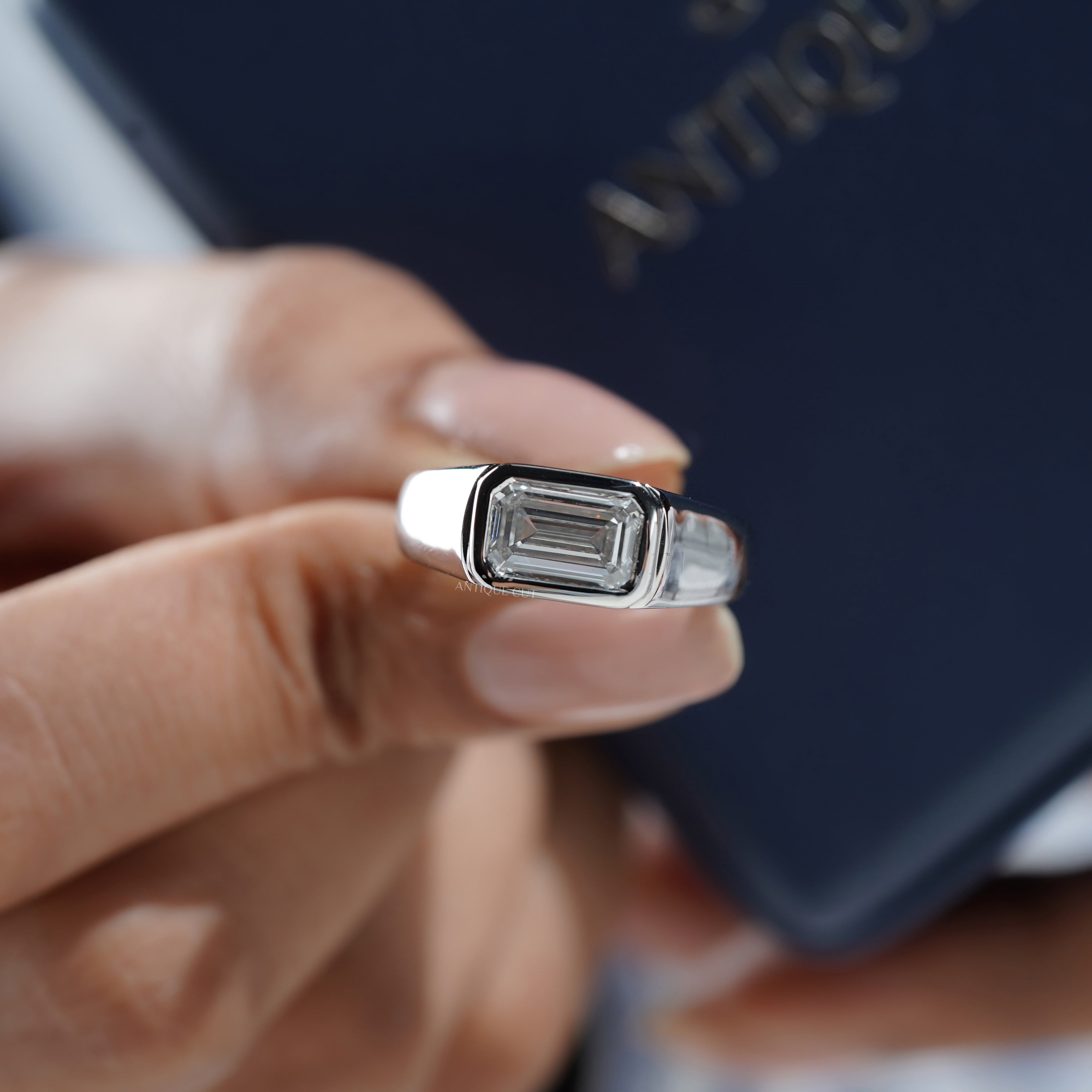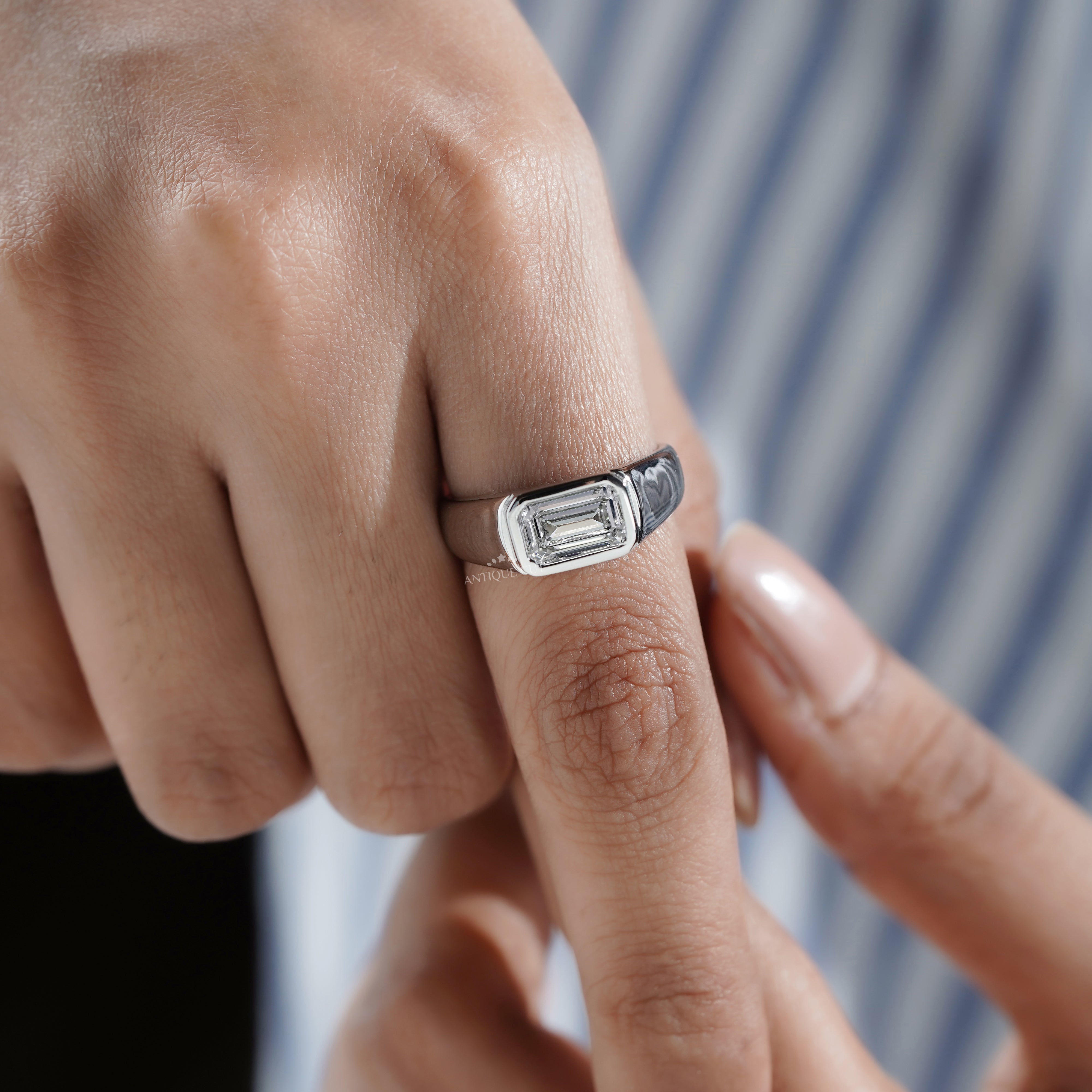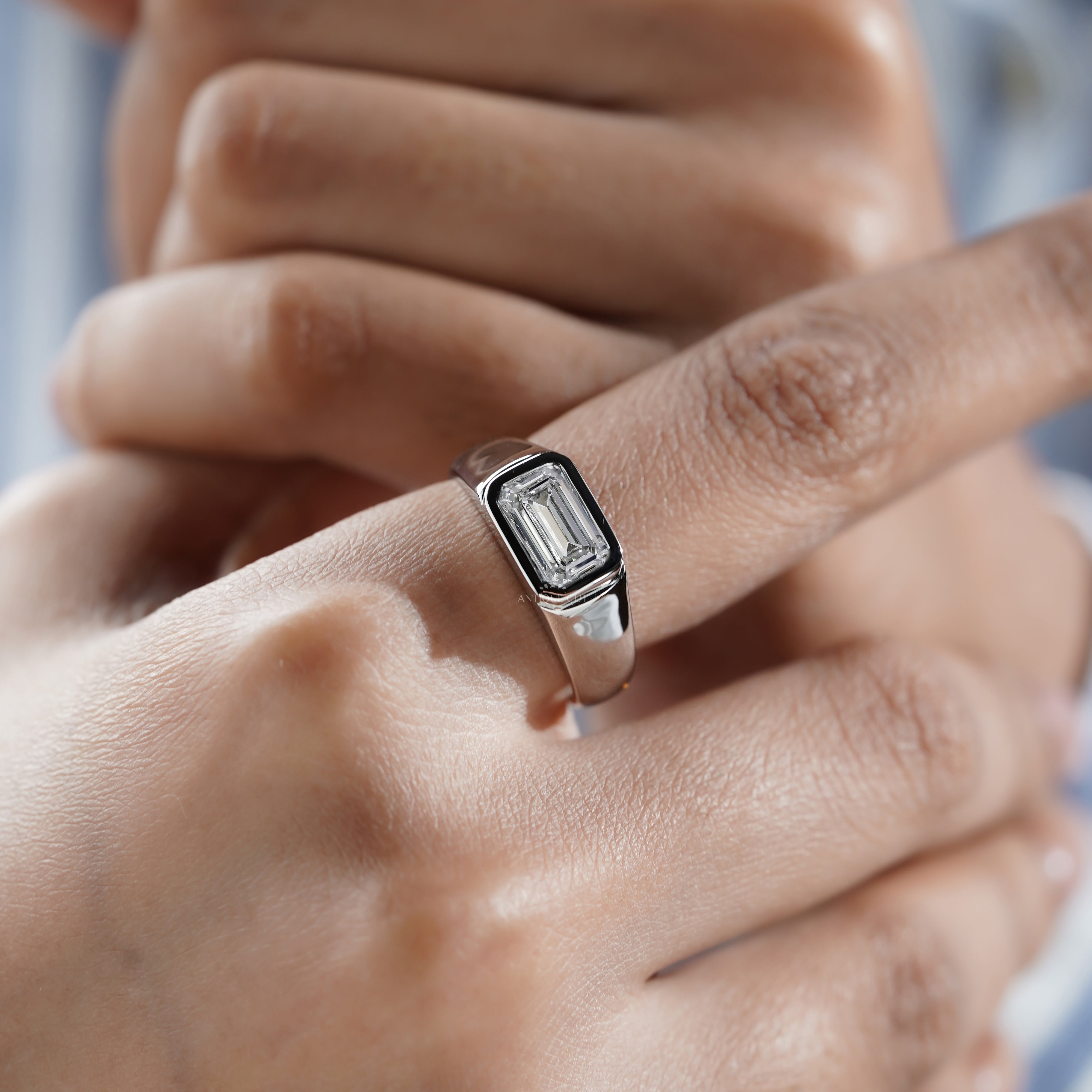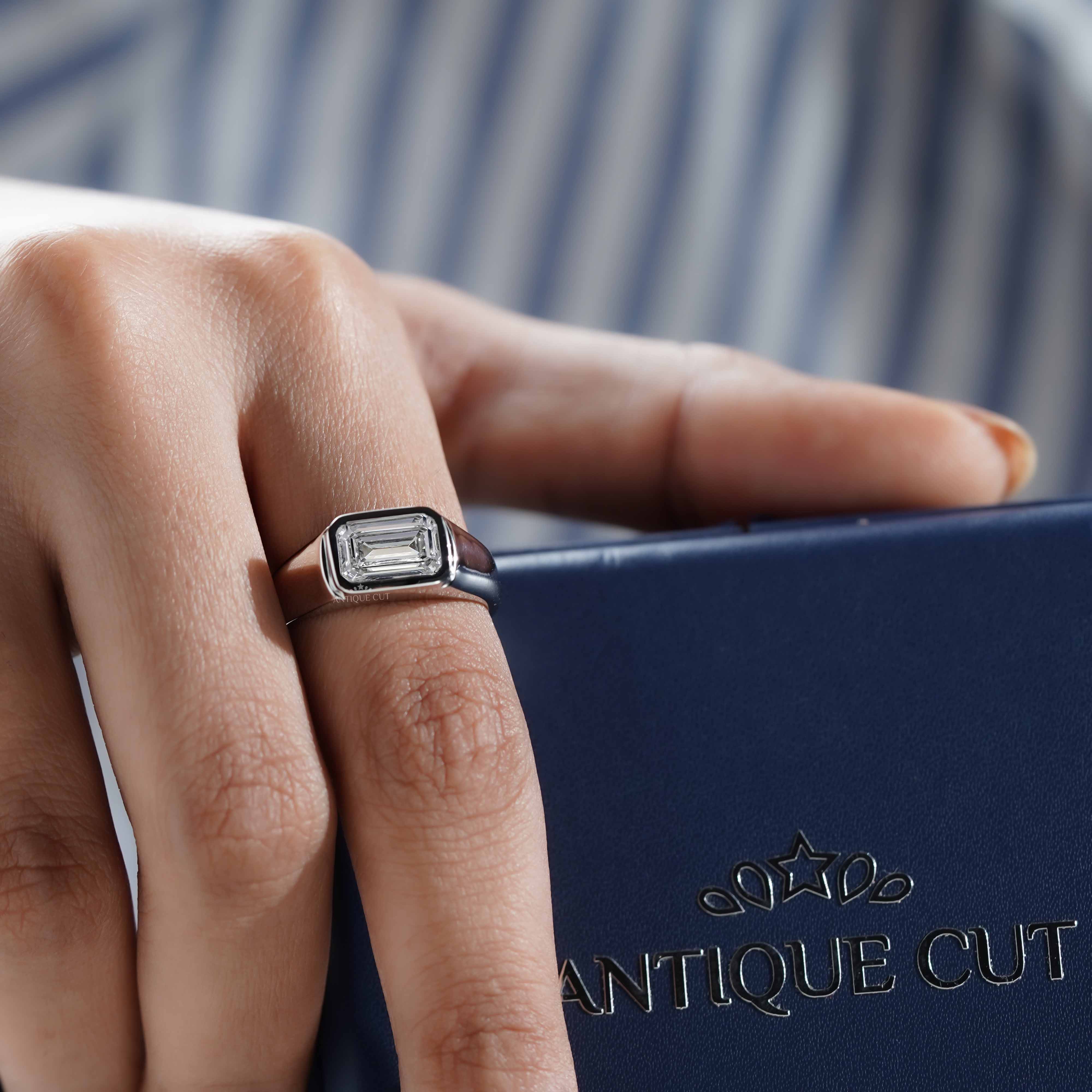 Emerald 2.50ct Lab Grown Diamond Men’s Ring in White Gold | IGI Certified