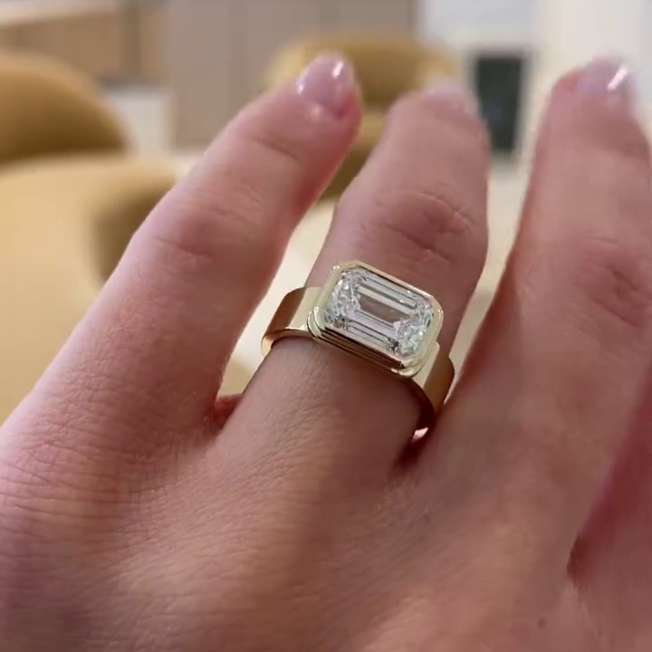 Emerald 3.00ct Lab Grown Diamond East-West Bezel Engagement Ring in Gold | IGI Certified