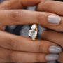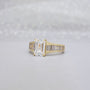 • 0.70ct baguette-cut side stones add vintage flair