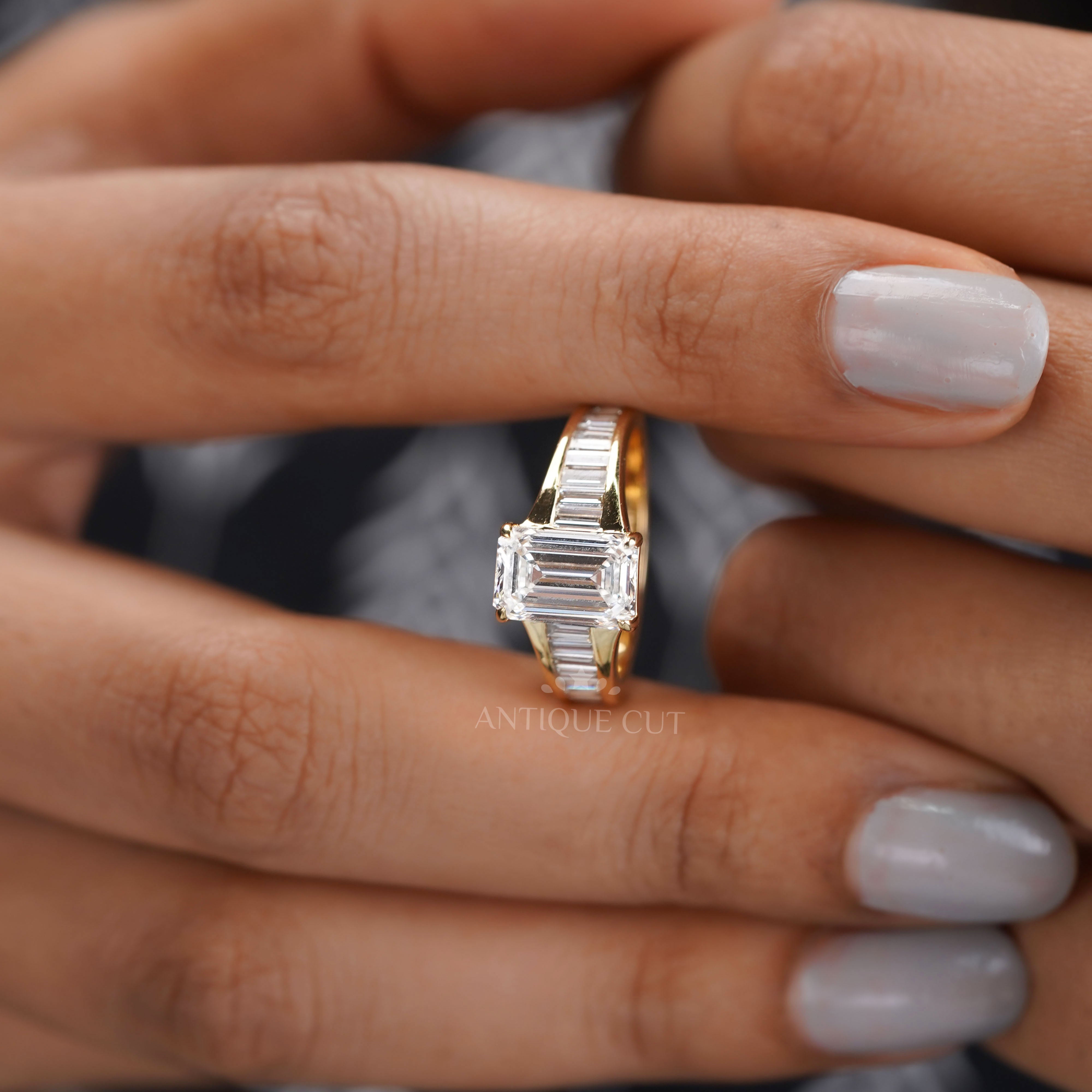Emerald 3.20tcw Lab Diamond Engagement Ring | 2.5ct Center | Baguette Band | IGI Certified