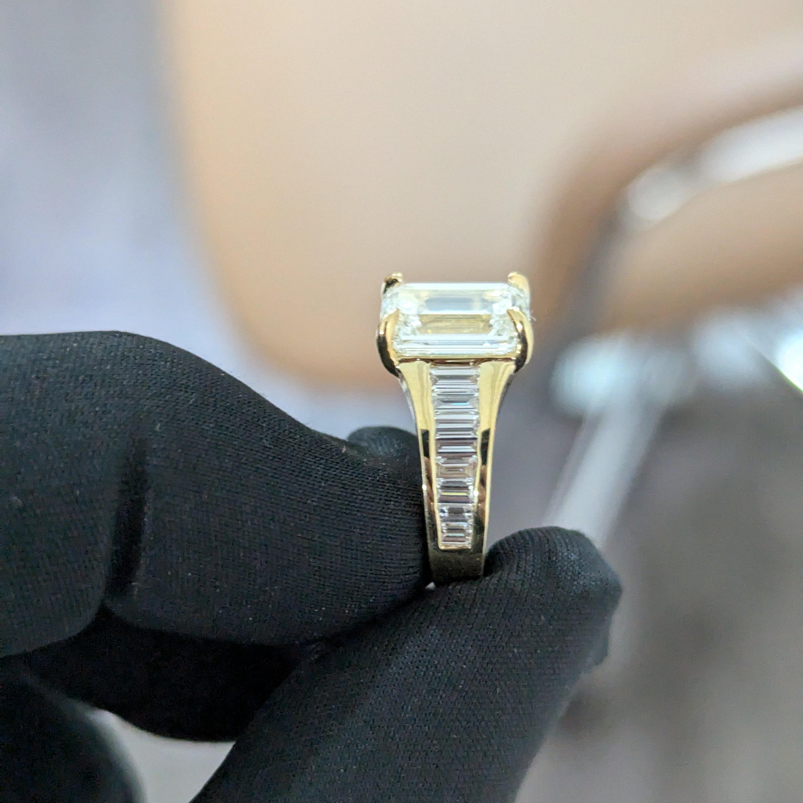 Emerald 3.65tcw Lab Diamond Ring with Baguette Sides | IGI Certified | D-E-F | VVS–VS | 10k–18k Gold