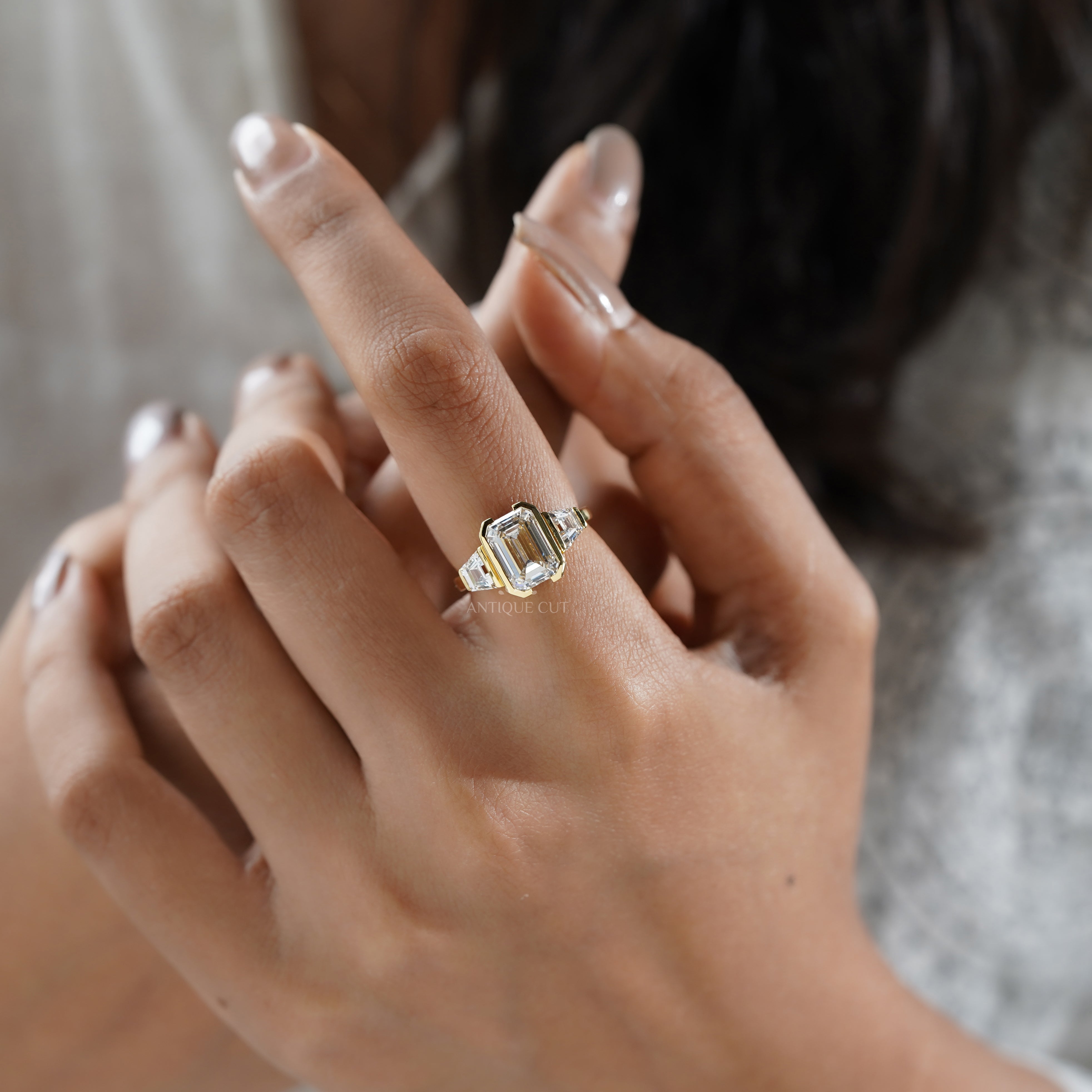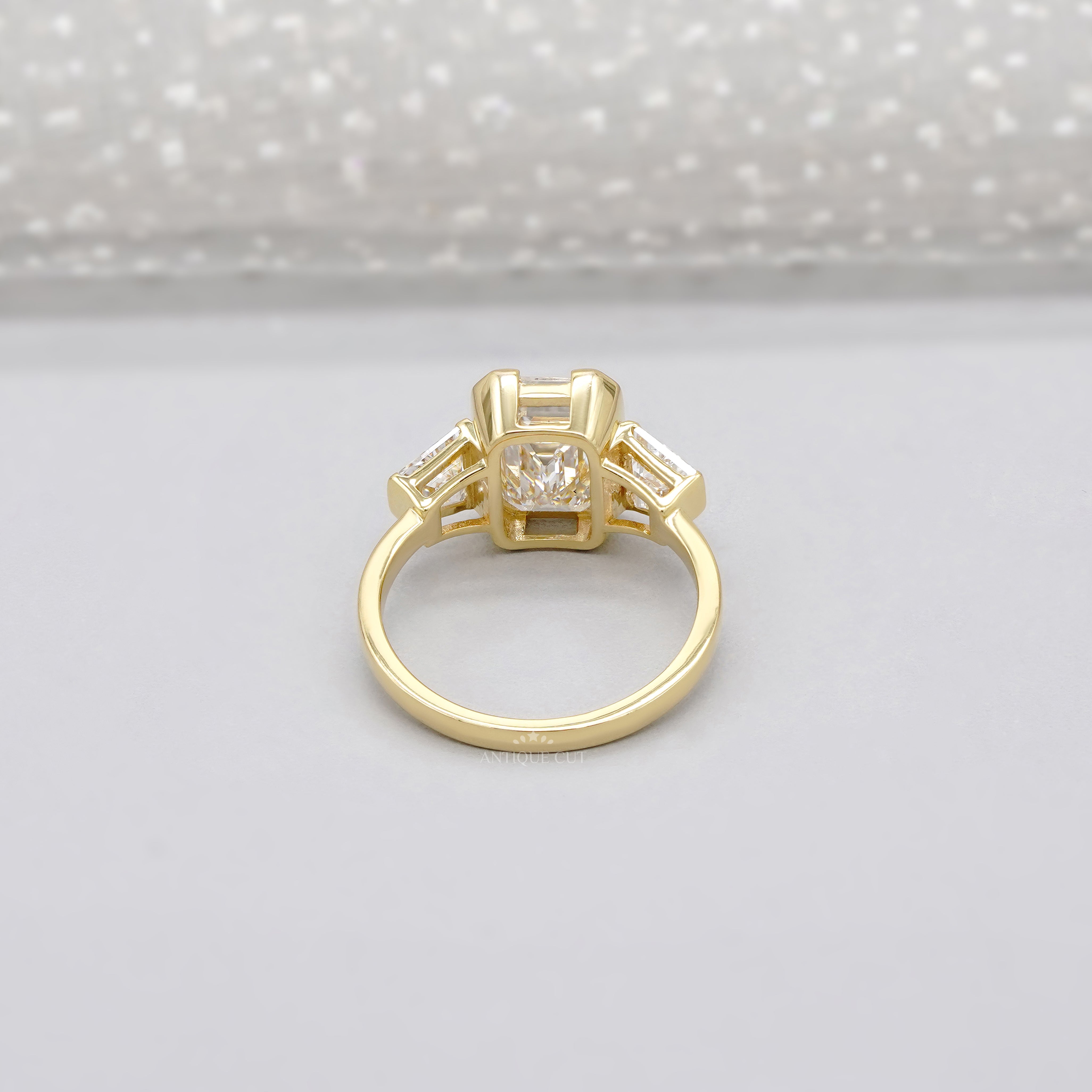 Features a bold 3.00ct emerald-cut center diamond paired with 0.70ct trapezoid-cut side stones in a sleek yellow gold setting. All diamonds are IGI certified, DEF color, and VVS–VS clarity for brilliance that lasts a lifetime.