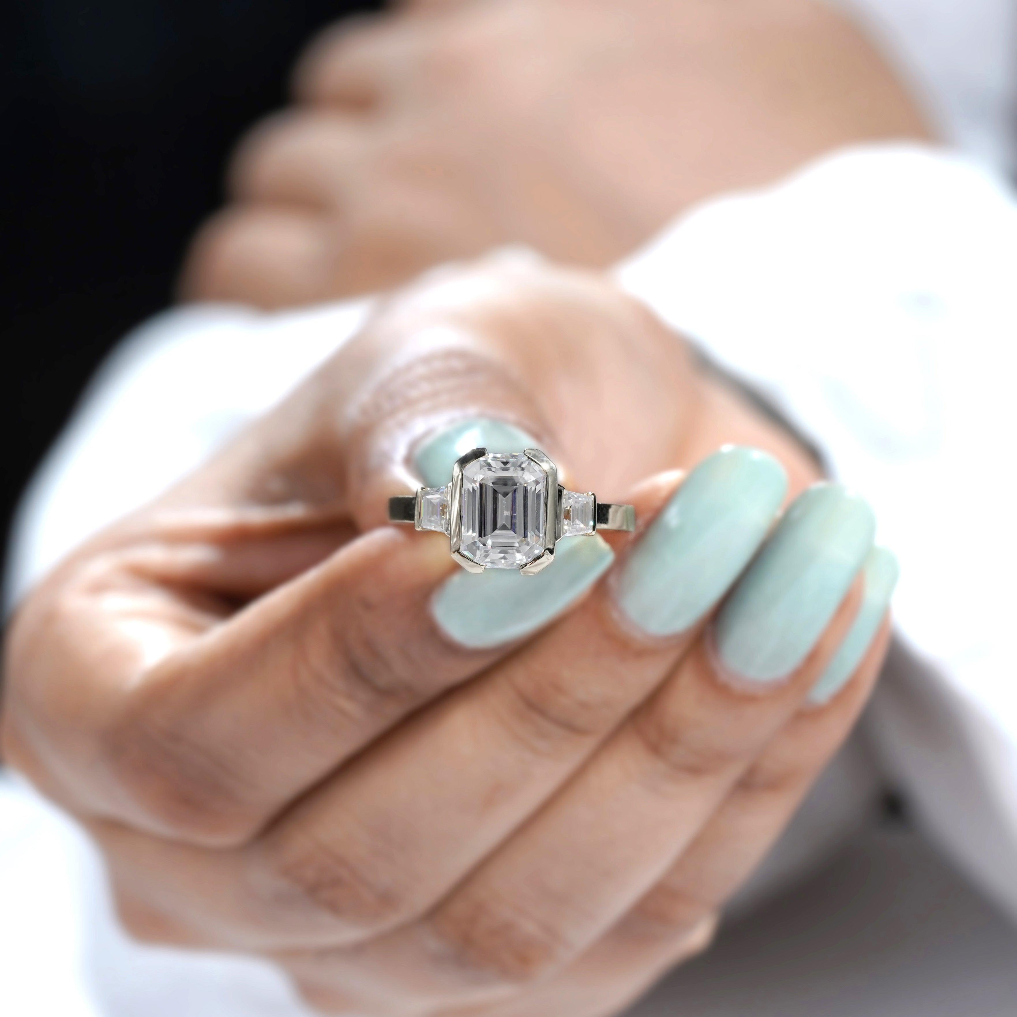 Emerald 4.00tcw Lab Grown Diamond Half Bezel Engagement Ring | IGI Certified | DEF VVS–VS