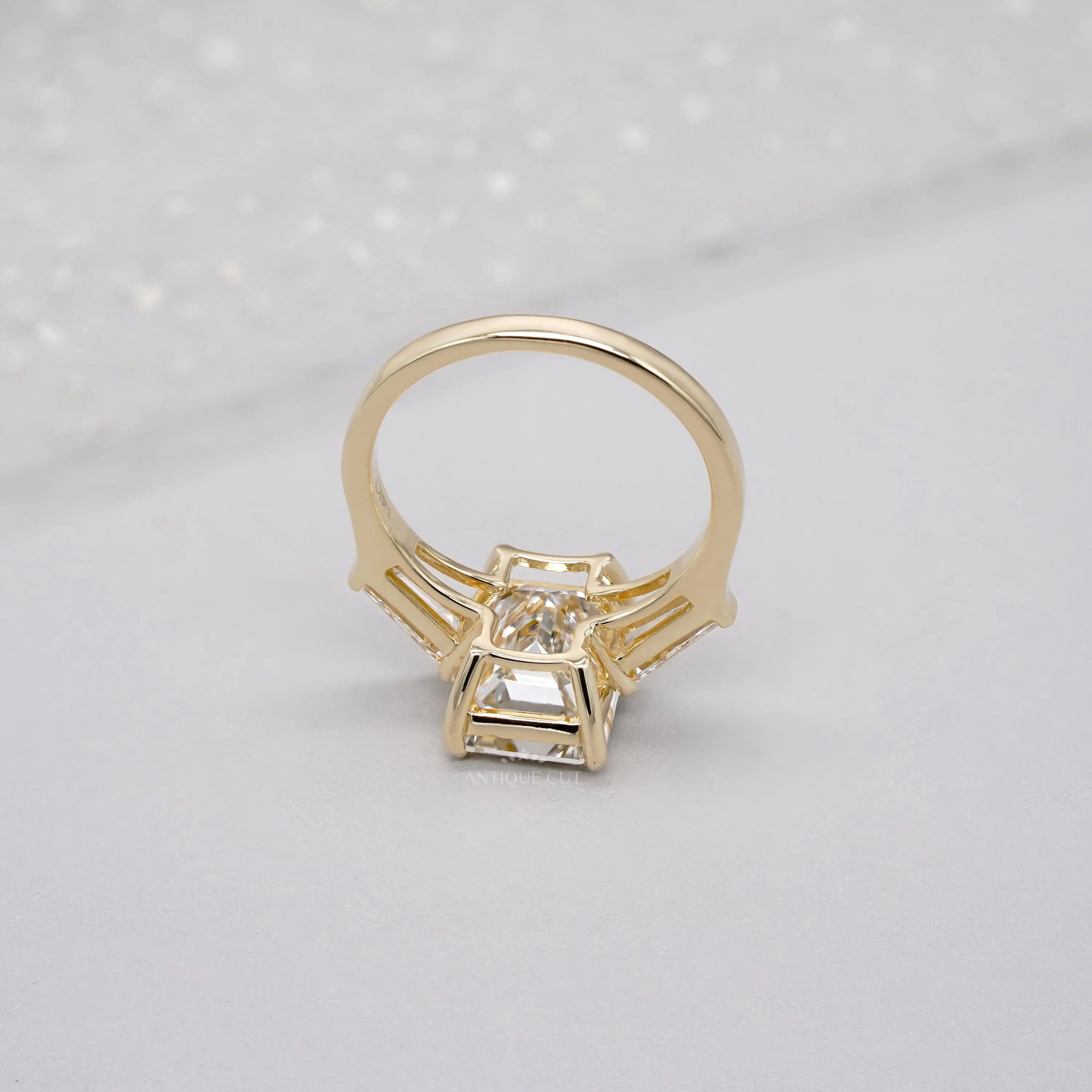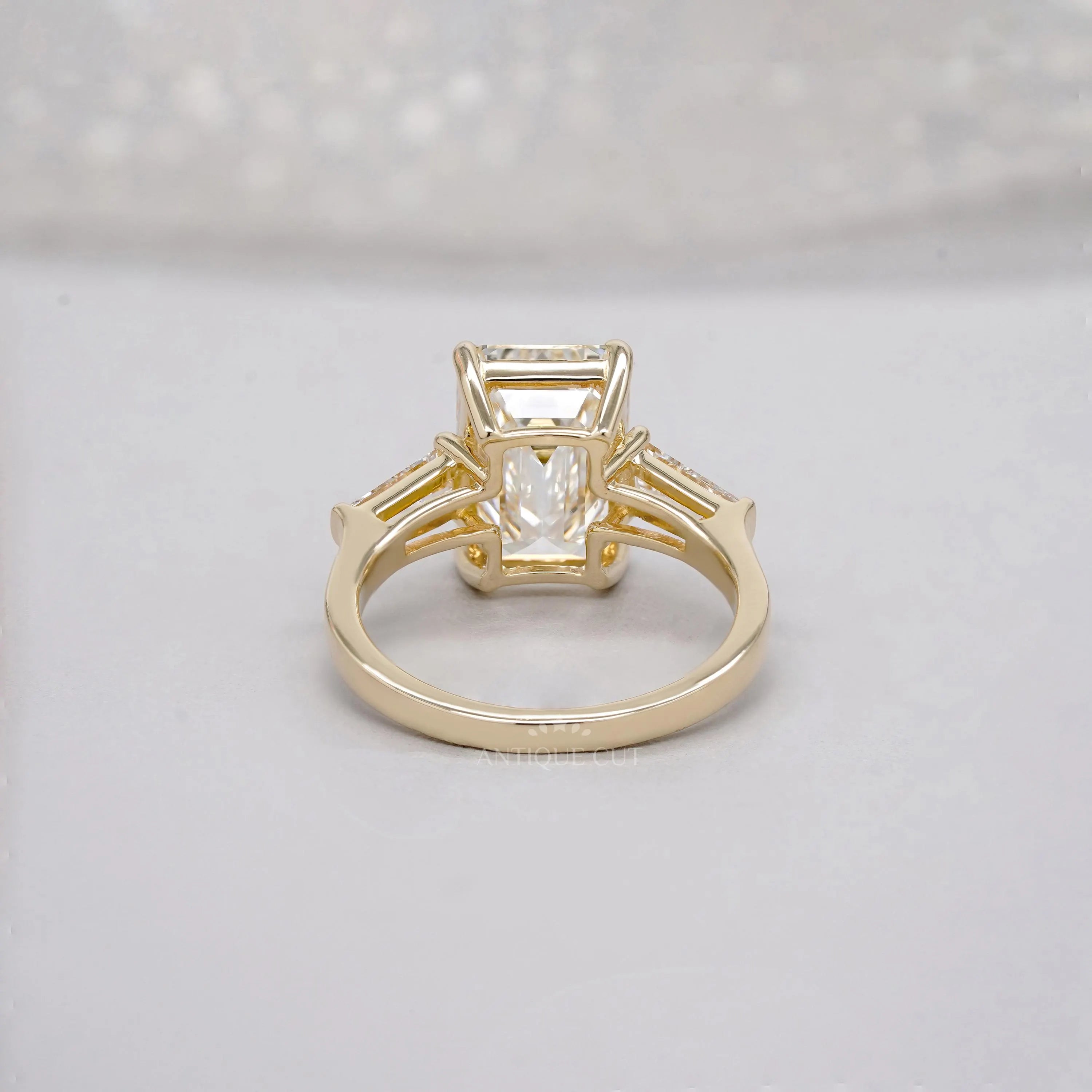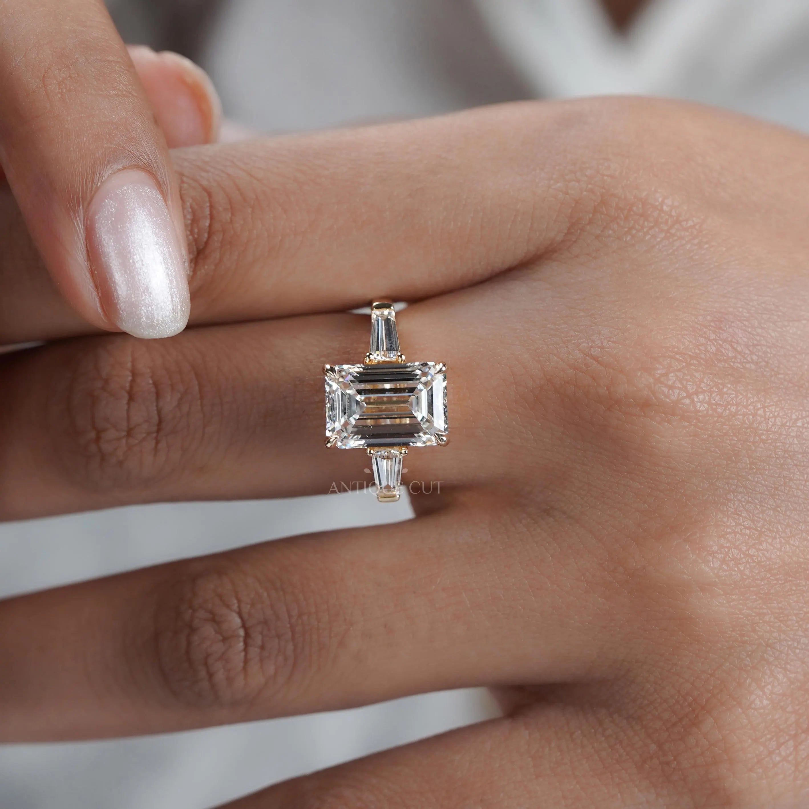 Emerald 5.60tcw Lab Diamond Three Stone Engagement Ring | Tap Baguette Side | IGI Certified
