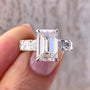 This 5.80tcw emerald-cut lab-grown diamond ring features a bold 4.00ct IGI-certified center stone and 1.80ct of cushion + round pavé diamonds in a hidden halo setting. Elegant, ethical, and handcrafted in white, yellow, or rose gold—customized to your love story.