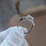Celebrate your love with this 5.80tcw Emerald Lab-Grown Diamond Engagement Ring in classic three-stone elegance. Features a bold 5.30ct emerald-cut DEF center diamond, accented by 0.50ct tapered EF baguette side stones. Handcrafted in 10k/14k/18k white gold and IGI certified for brilliance, ethics, and beauty.