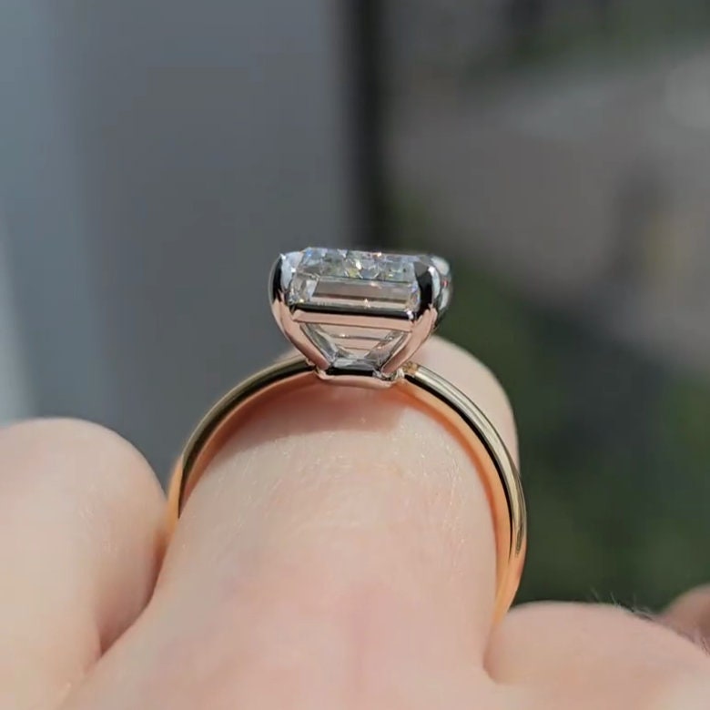 Make a bold statement with this 7.00ct emerald lab-grown diamond ring in a two-tone gold setting. Ethically sourced, IGI-certified, and handcrafted to perfection. A luxurious and sustainable choice for your forever moment.