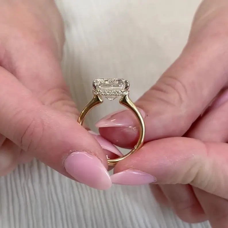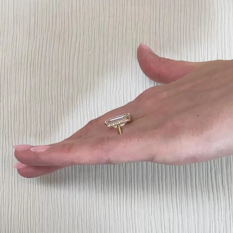 • 8.00ct emerald-cut lab-grown diamond with hidden halo