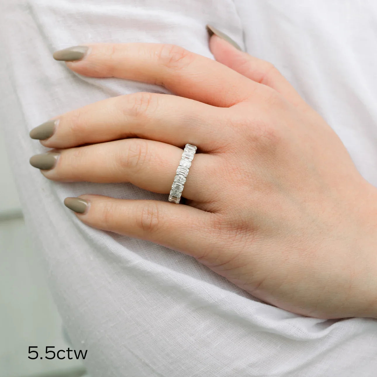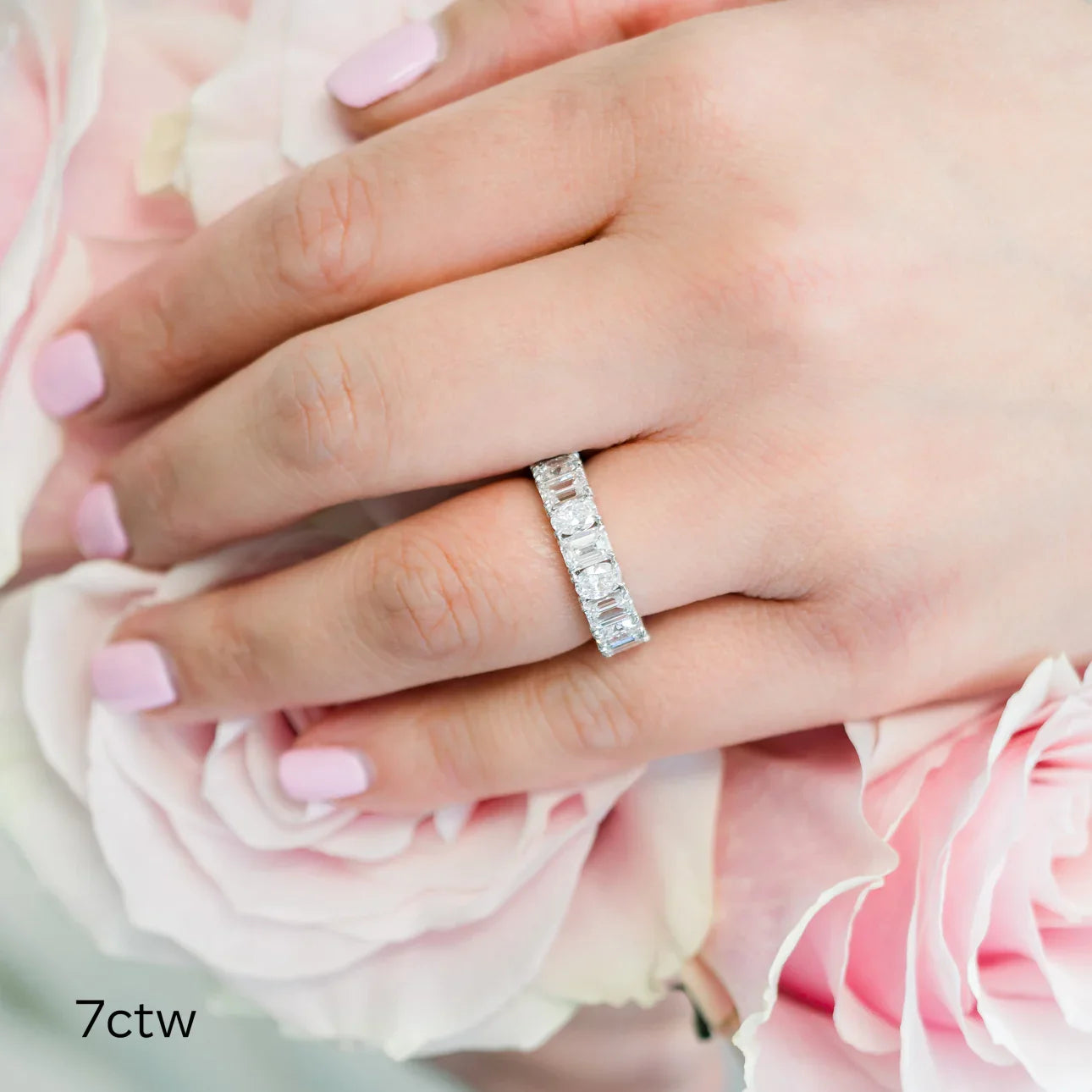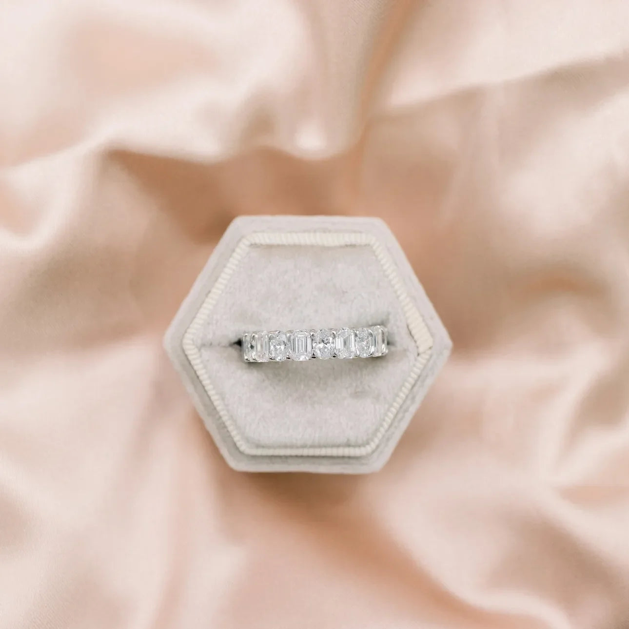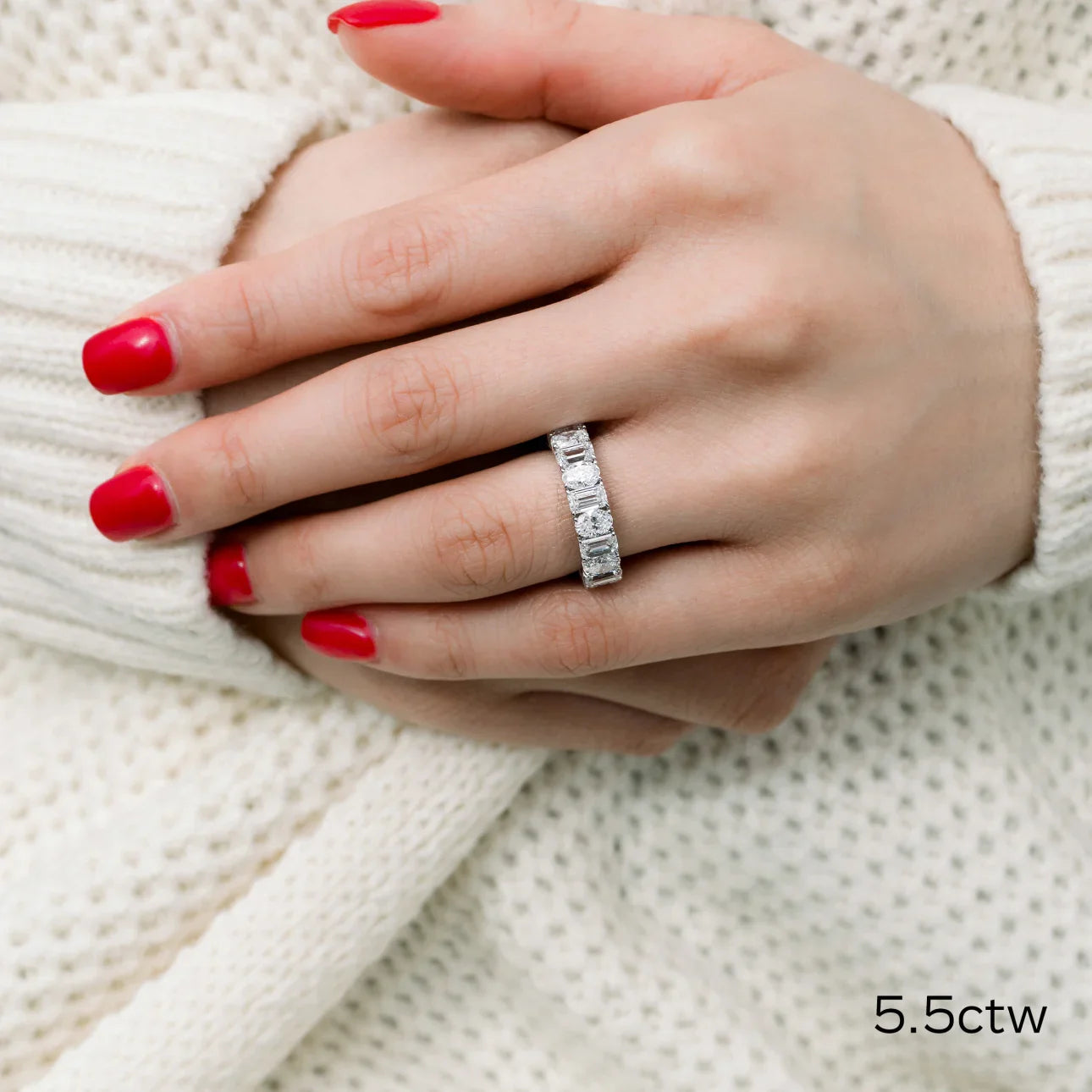 Sparkle and shine with our Emerald And Oval Lab Grown Diamond Eternity Band. Each diamond is carefully selected for its EF color and VS clarity, ensuring a stunning and high-quality piece. IGI certification assures you of authenticity and value. Elevate any look with this elegant and timeless band.