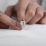 This handcrafted bezel engagement ring features a bold 3.00ct emerald-cut lab grown diamond set in a smooth, modern frame. The bezel setting gives the ring a clean, sculpted look while protecting the stone, making it a perfect choice for someone who prefers a low-maintenance and contemporary style.