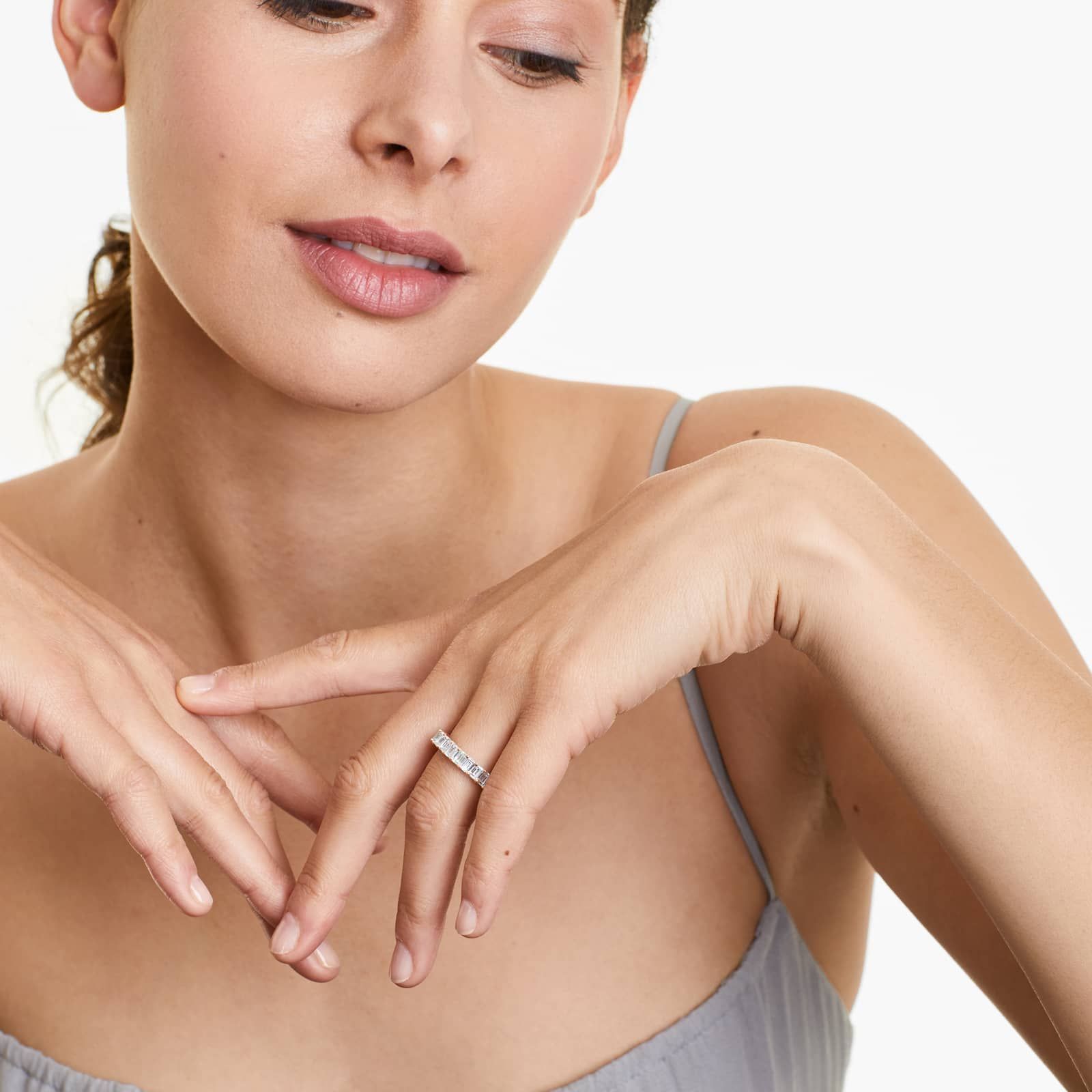 Expertly crafted and ethically sourced, our Emerald Cut Lab-grown Diamond Eternity Ring boasts a stunning EF color and flawless VS clarity. With IGI certification, this timeless piece guarantees the highest quality and value for your investment. Elevate your style and conscience with this exquisite ring.