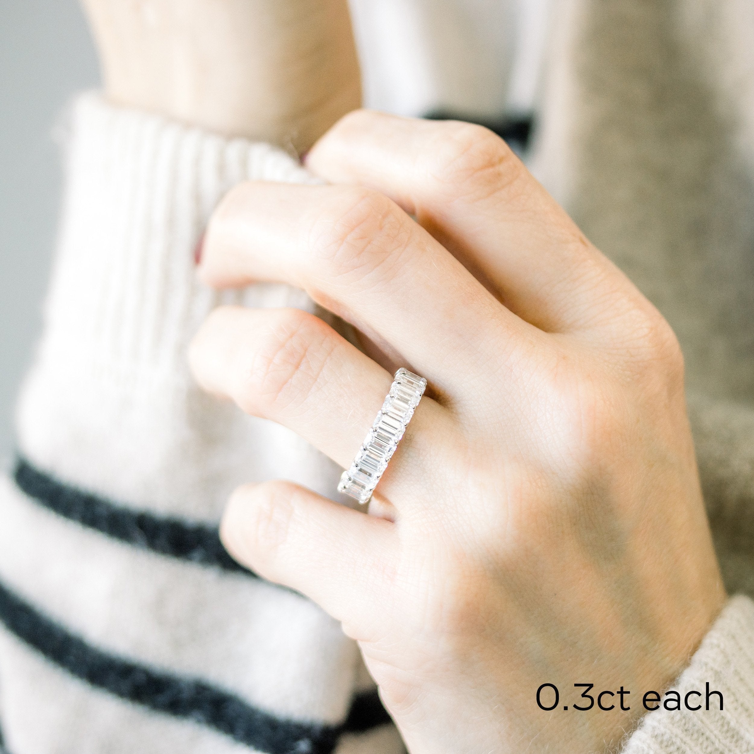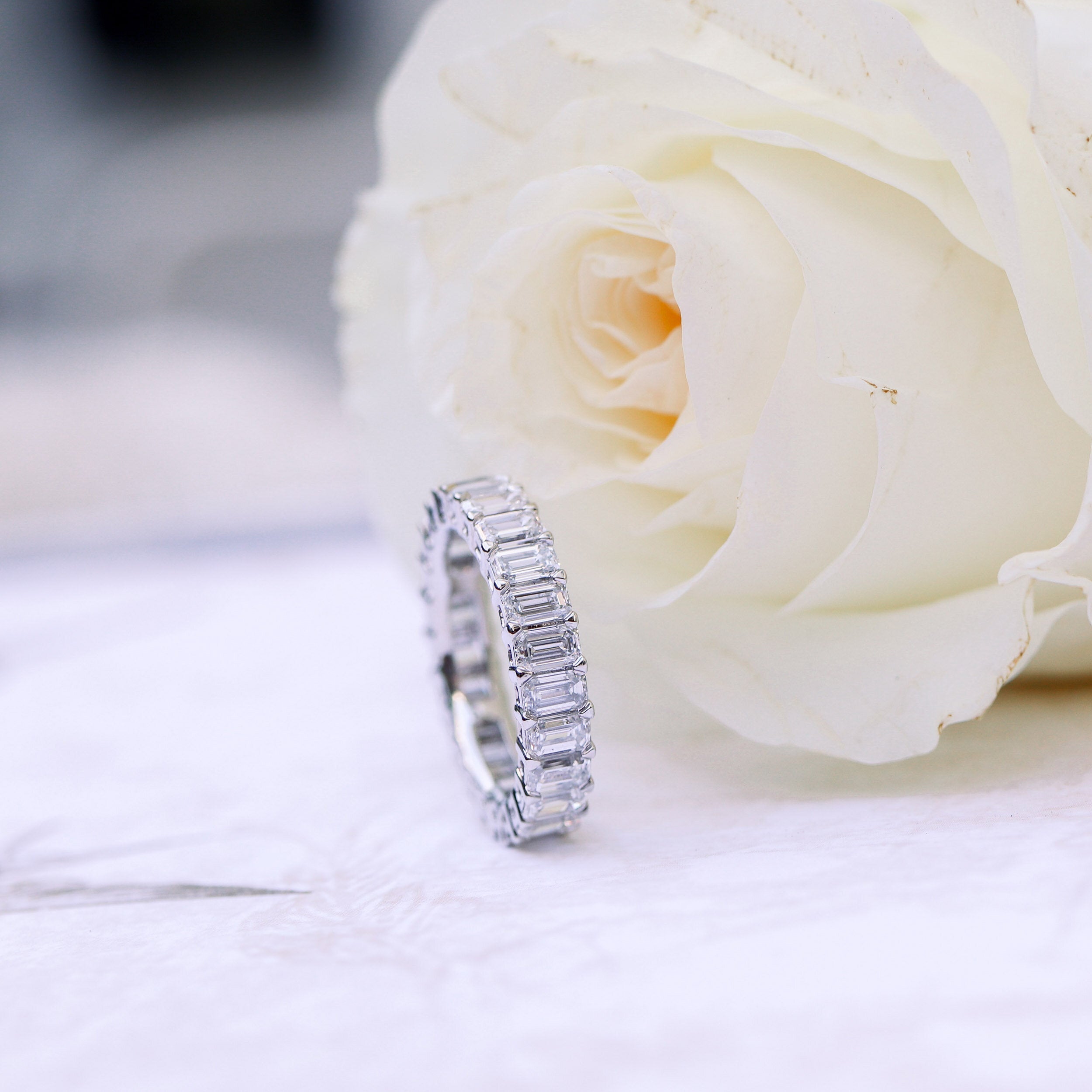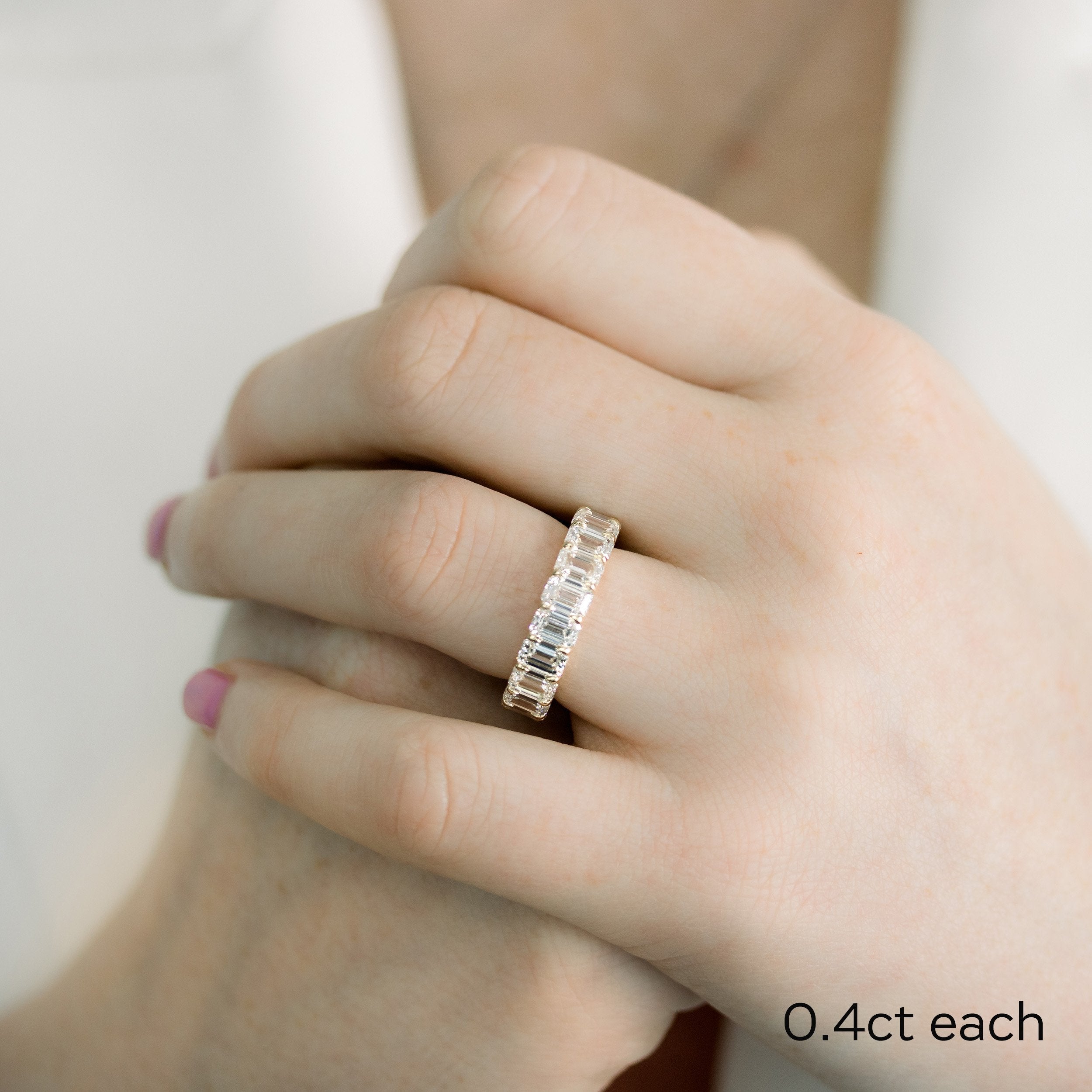 Celebrate your forever with this Emerald Lab Grown Diamond Eternity Band — a luxurious circle of perfectly matched emerald-cut diamonds, each hand-set for maximum sparkle. Crafted in your choice of 14k or 18k gold, this band features DEF color, VS clarity diamonds that are IGI-certified for guaranteed quality and authenticity.